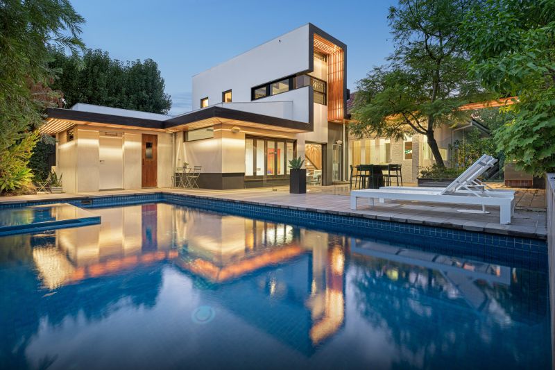 Reached just as seamlessly by elevator and spiral staircase, a remarkable roof terrace lifts appeal beyond compare, while other highlights include security, heating/cooling, gas pool heating, heated towel rails, ornate details, a combined laundry/powder room, lock-up garage, second-storey reader’s retreat, electric-gated driveway parking, and lit, irrigated, and manicured gardens. Steps to famous High Street and quaint Beatty Avenue, city-bound trains and trams, and some of Melbourne’s most revered private schools.