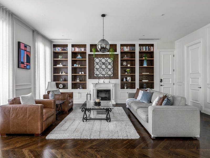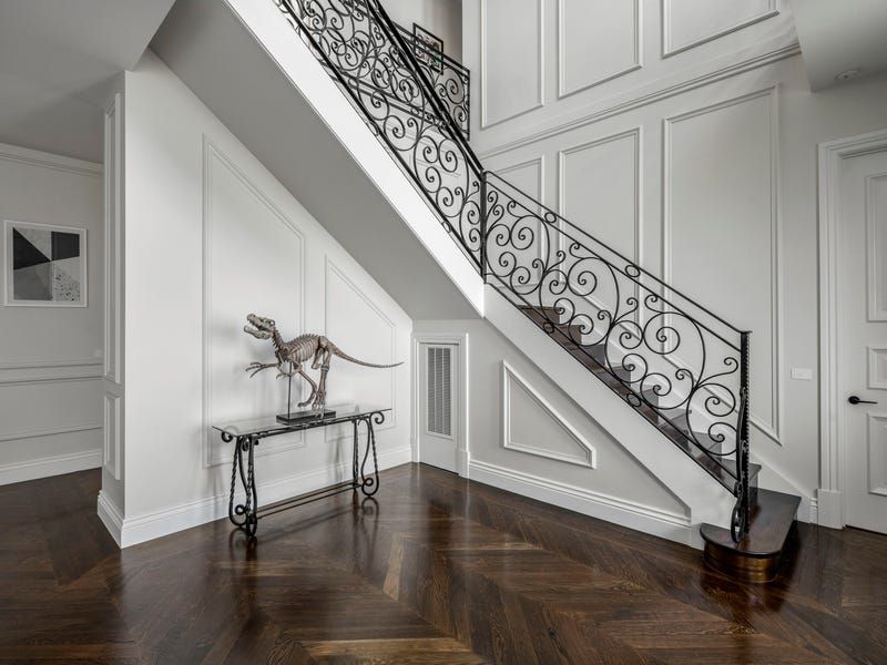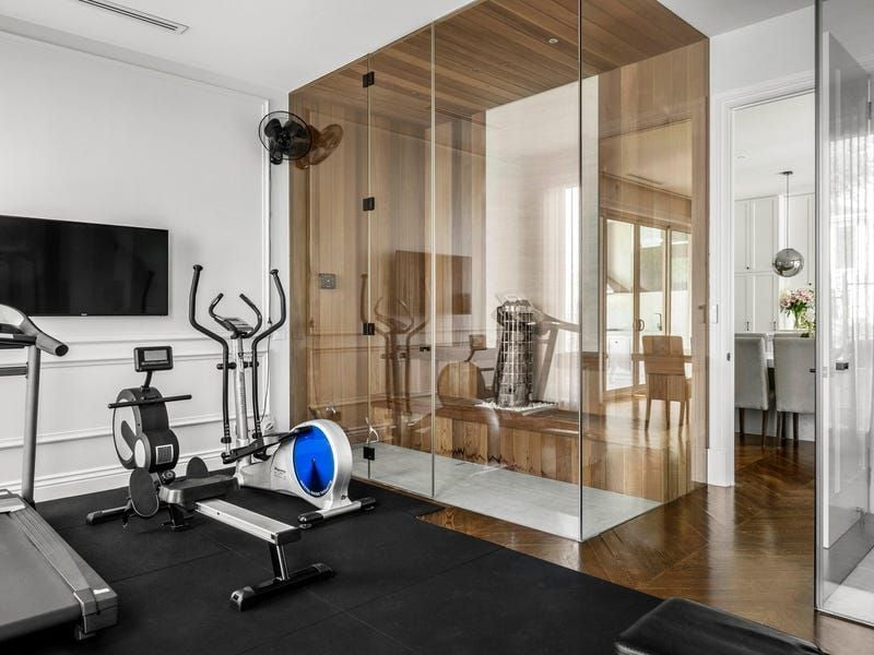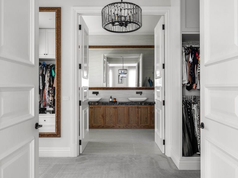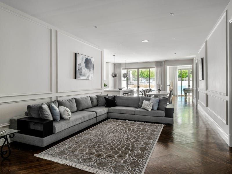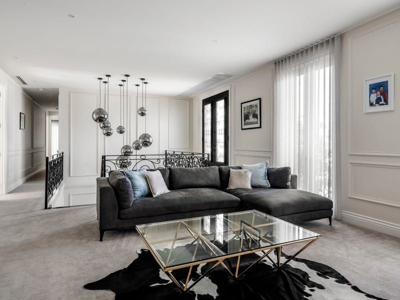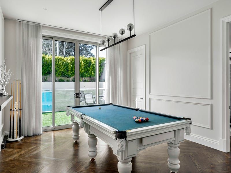 Solid French oak floors and cabinetry along with marble and travertine surfaces go hand in hand with a range of features from double-glazing, electric blinds, automated toilets and audio system to hydronic floor heating, zoned ducted air-conditioning, security alarm and CCTV. A two-level void, executive study and elegant sitting room (gas fireplace) launch an extensive interior flowing to a living room, powder room, family dining area and the billiard room with a WIR and bathroom/ensuite.