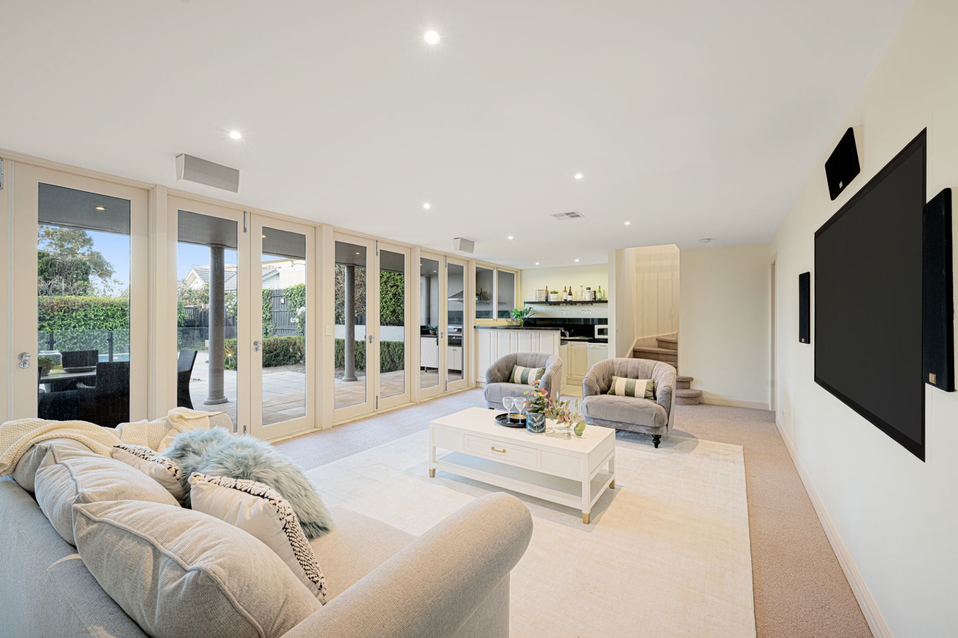Entertainment options abound with a large home theatre or rumpus room complete with a full wet bar, seamlessly spilling onto poolside terraces equipped with an al fresco kitchen. Dedicated luxury includes two powder rooms, ducted heating, air conditioning, and enhanced security features, all complemented by elegant parquetry floors throughout.