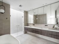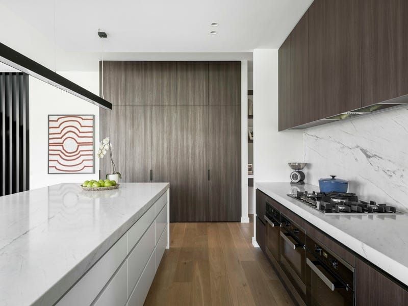 The open-plan family domain features a north-facing living area (gas fireplace), casual dining area and a sublime luxury kitchen encased in marble that boasts top-line Miele appliances, caf windows and a superb butler's pantry with dishwasher and drinks fridge. A versatile upstairs home theatre/lounge with bar is complemented by a family bathroom and powder room while further is a grand main bedroom with stunning ensuite and impressive walk-in robe plus three additional bedrooms (built-in robes, extra ensuite).