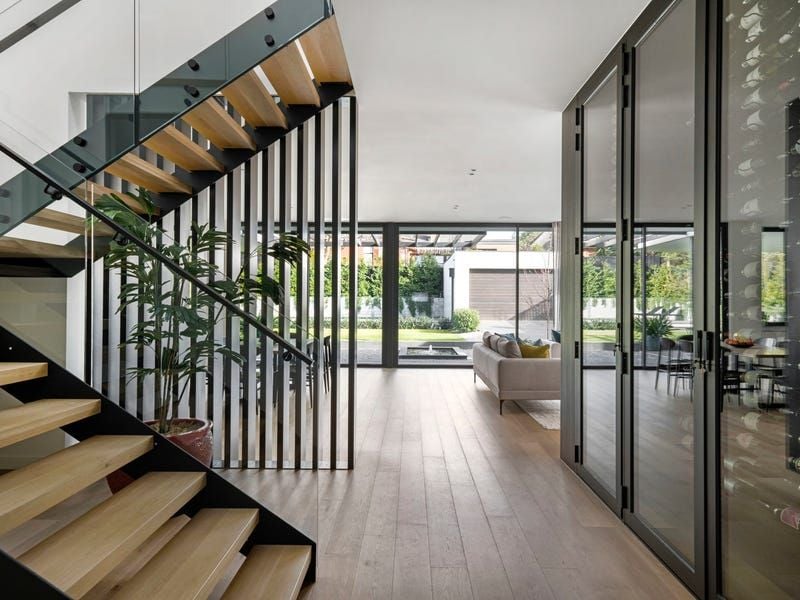 Retaining its outstanding refinement, the large sitting room with an open fireplace extends to a light-laden sunroom overlooking the garden as does a spacious study or home office. A ground-floor bedroom with a modern ensuite precedes a huge showcase cellar, chic powder room and a vast laundry before transitioning on exquisite European oak floors to an expansive rear family zone, undercover entertainment terrace and lush garden-set pool with heating.