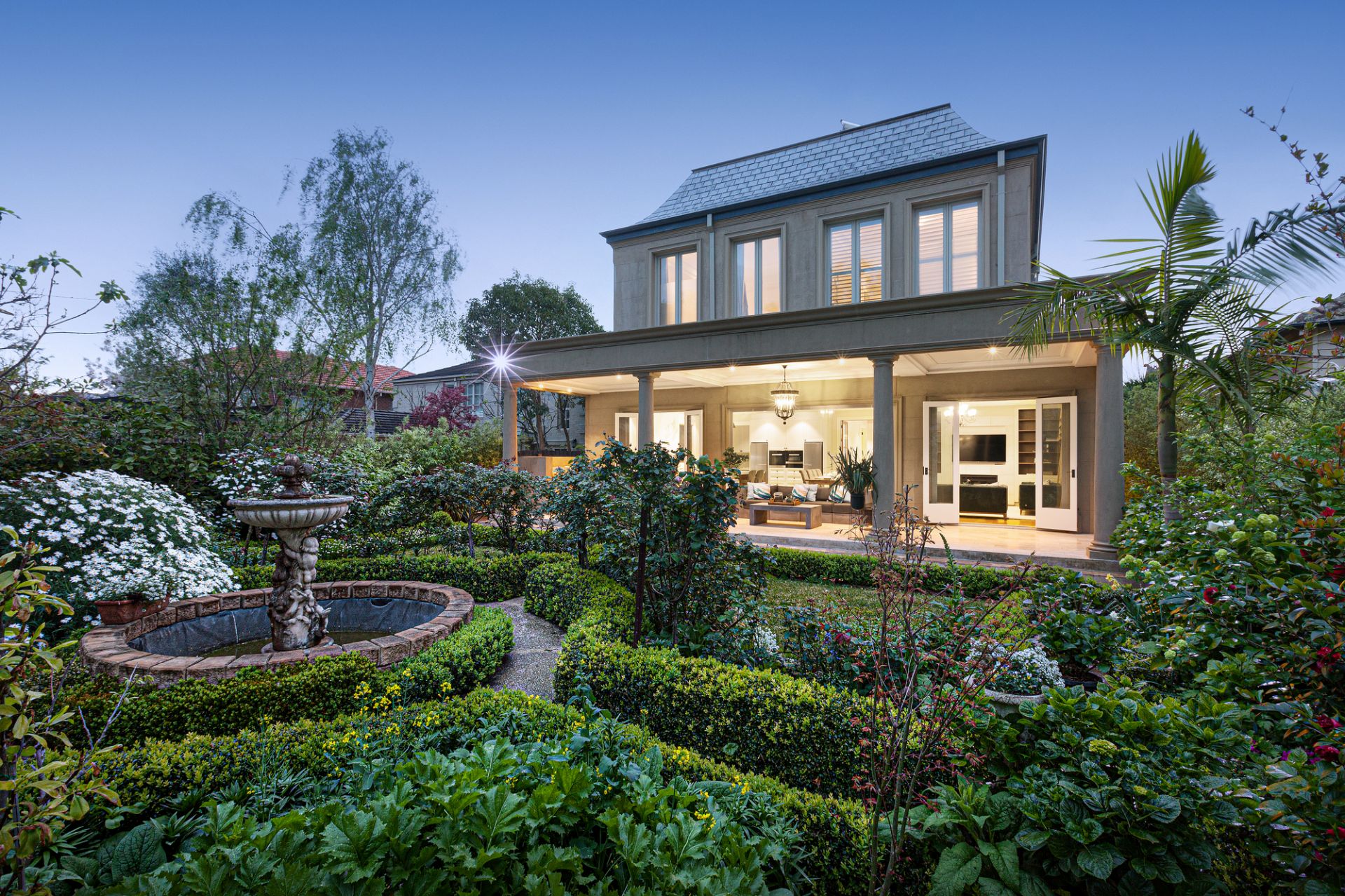 A stunning example of French Provincial opulence in Canterbury's prestigious Golden Mile precinct, this architectural masterpiece by acclaimed designer Phillip Mannerheim showcases exceptional craftsmanship and sophisticated elegance, perfectly tailored for a discerning family near a selection of esteemed private schools. Every detail radiates luxury, featuring an imposing mansard slate roof, wrought iron-accented automatic gates, and a meticulously designed parterre garden.