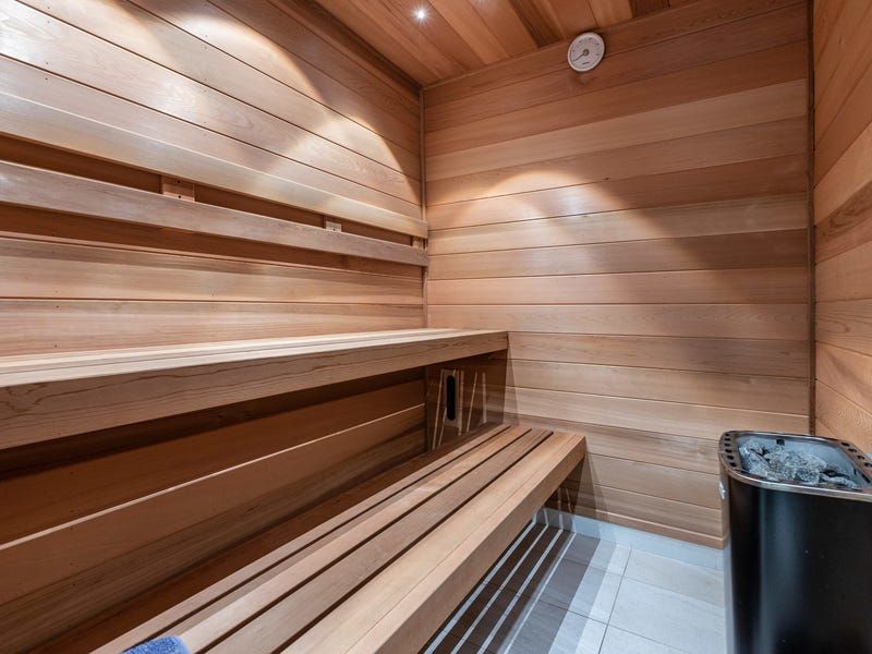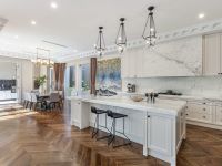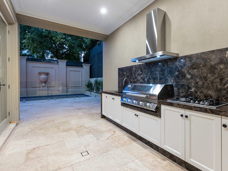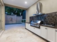 A deluxe marble kitchen boasts Miele steam oven, coffee machine and integrated fridge/freezer plus Zip instant boil/chill tap and a butlers pantry accompanied by a bar area with tall wine fridge and glass cabinetry. Oriented north just outside is equally impressive for the consummate entertainer where an undercover BBQ kitchen, full bathroom, cedar sauna and a fully-tiled swimming pool beside a travertine-finished terrace create a sublime, secluded, low-upkeep alfresco setting.