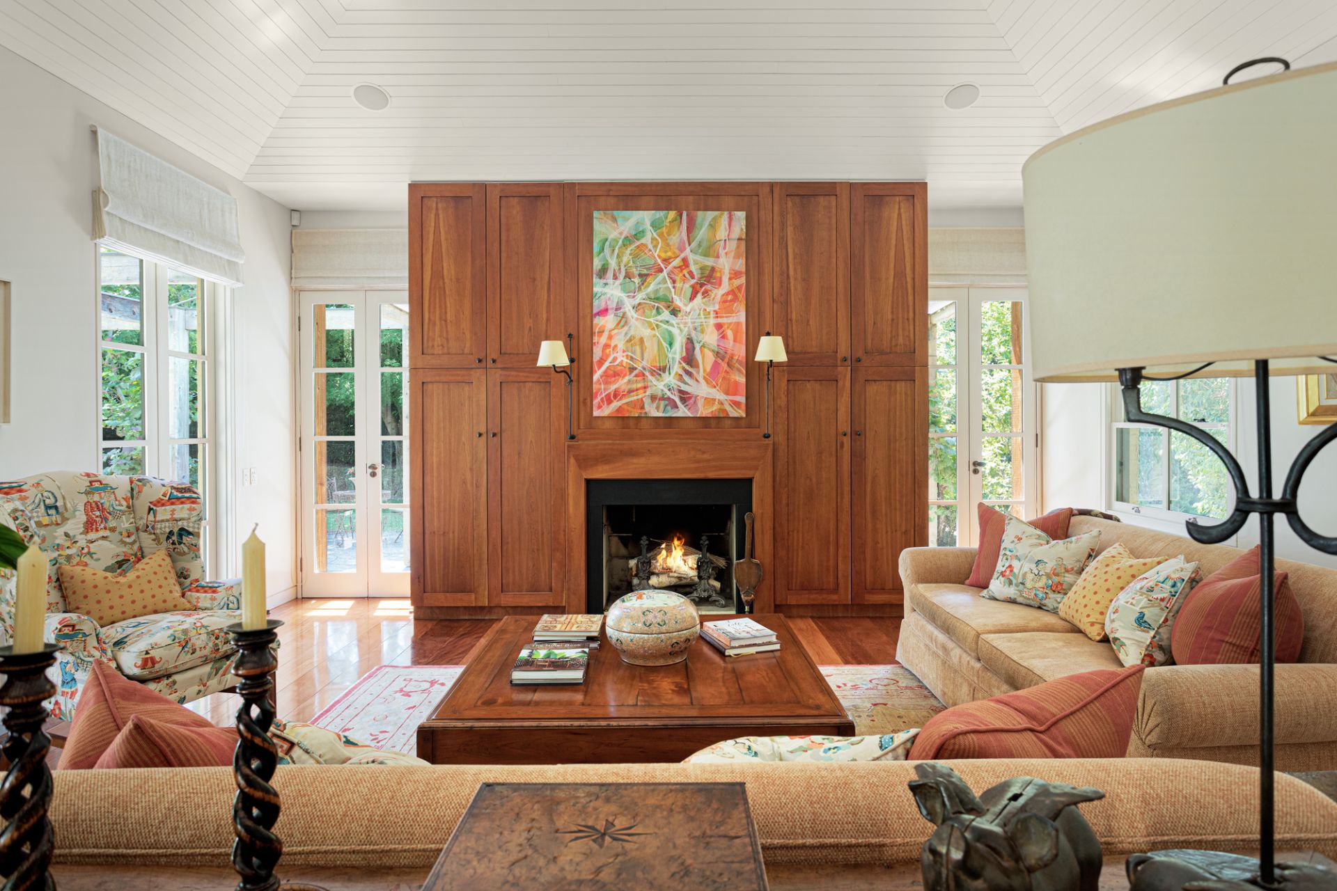 Further is a powder room, a granite-finished laundry and a home-hub desk, while wine and food enthusiasts will be impressed by a sub-floor wine cellar and the impeccably-appointed Gaggenau kitchen boasting pyrolytic double ovens, gas and electric cooktops, steamer, grill, Miele dishwasher, a vast granite island bench and a butler’s pantry. Adjoining is an expansive open-plan family domain with an open fireplace beneath a soaring timber mansard ceiling with multiple French doors to the garden.