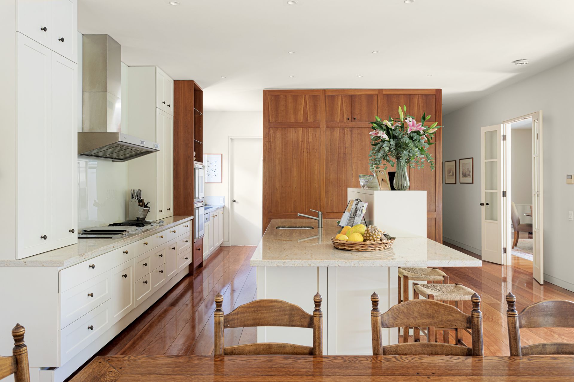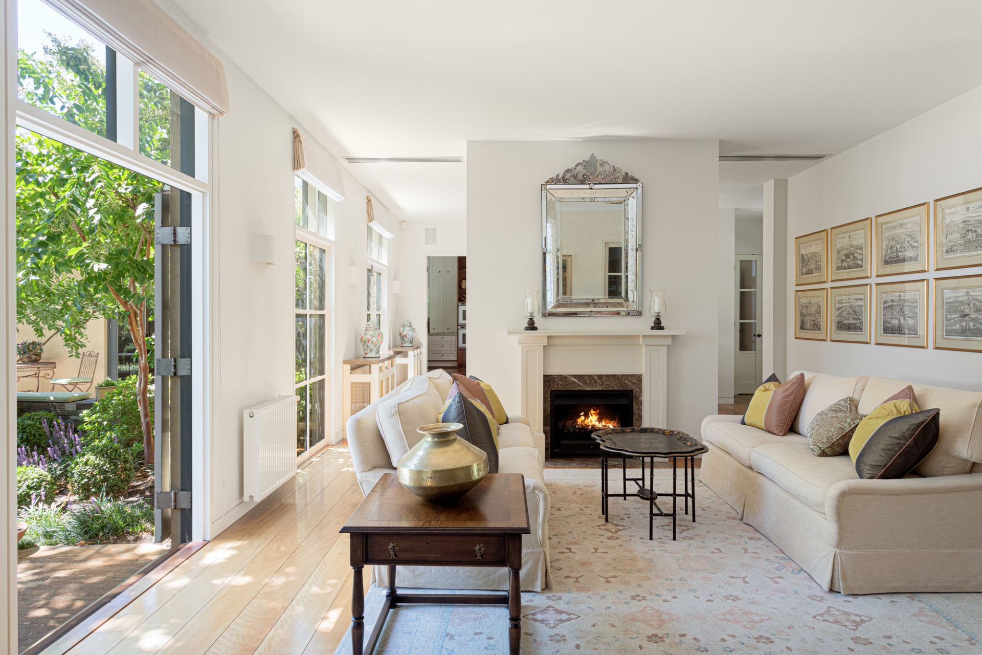 Master craftsmanship is on display throughout with a selection of rich timber accents from bespoke cabinetry to solid kiln-dried floorboards with a perfectly expressed executive study/library warmed by a Jetmaster gas fireplace, an elegant lounge room with marble-surround gas fireplace and a distinguished formal dining room, all enriched by surround-sound speakers and French doors opening to the glorious garden oasis located at the rear.
