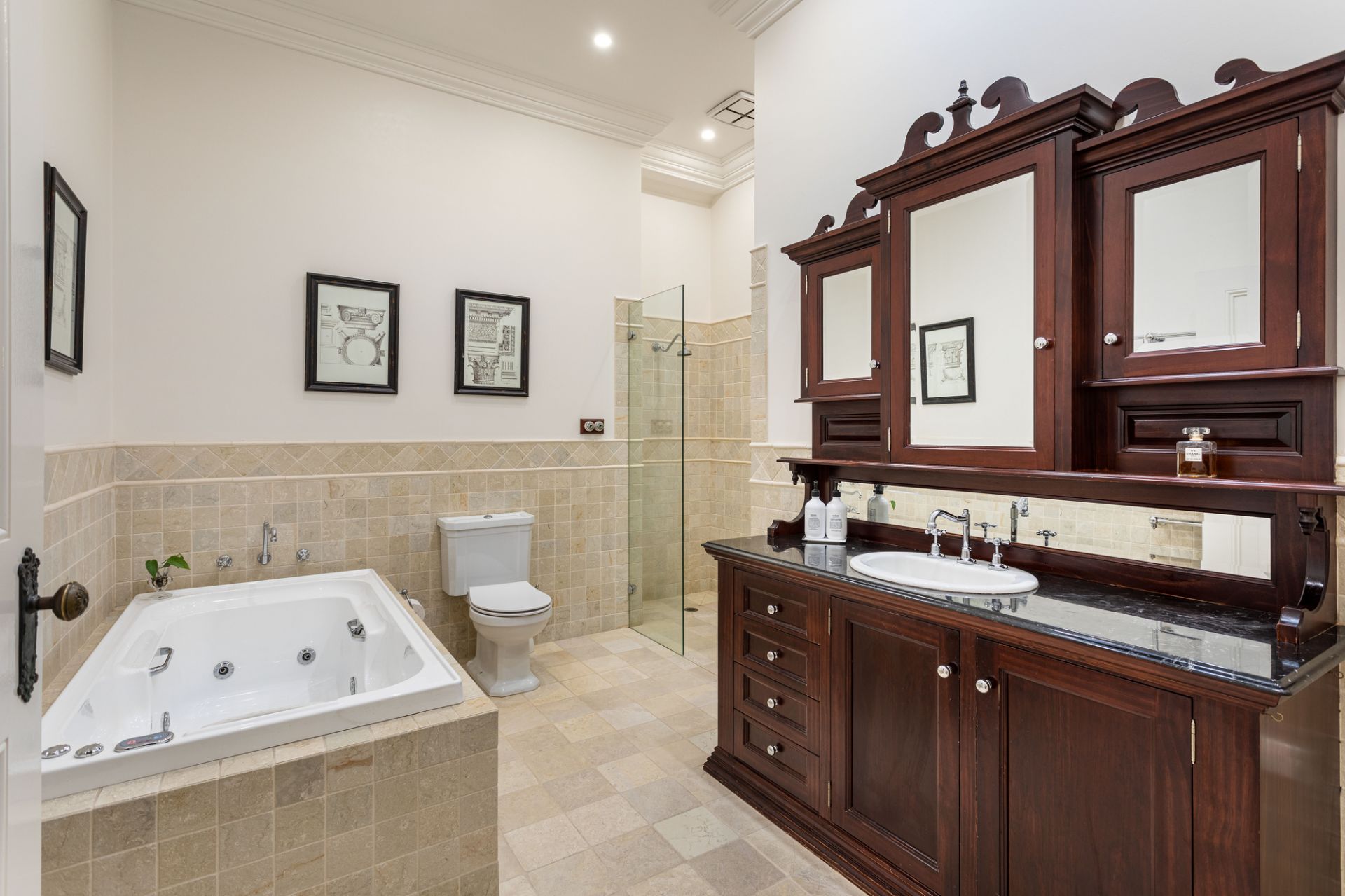 Set on a generous 812sqm (approx.) allotment with no heritage overlay, with frontage 20.12m, the property has been meticulously maintained inside and out. The ground floor includes a welcoming entrance hall leading to a study or fifth bedroom, a main bedroom with walk-in robe and ensuite, formal living and dining rooms, an additional bedroom, family bathroom, and a laundry.