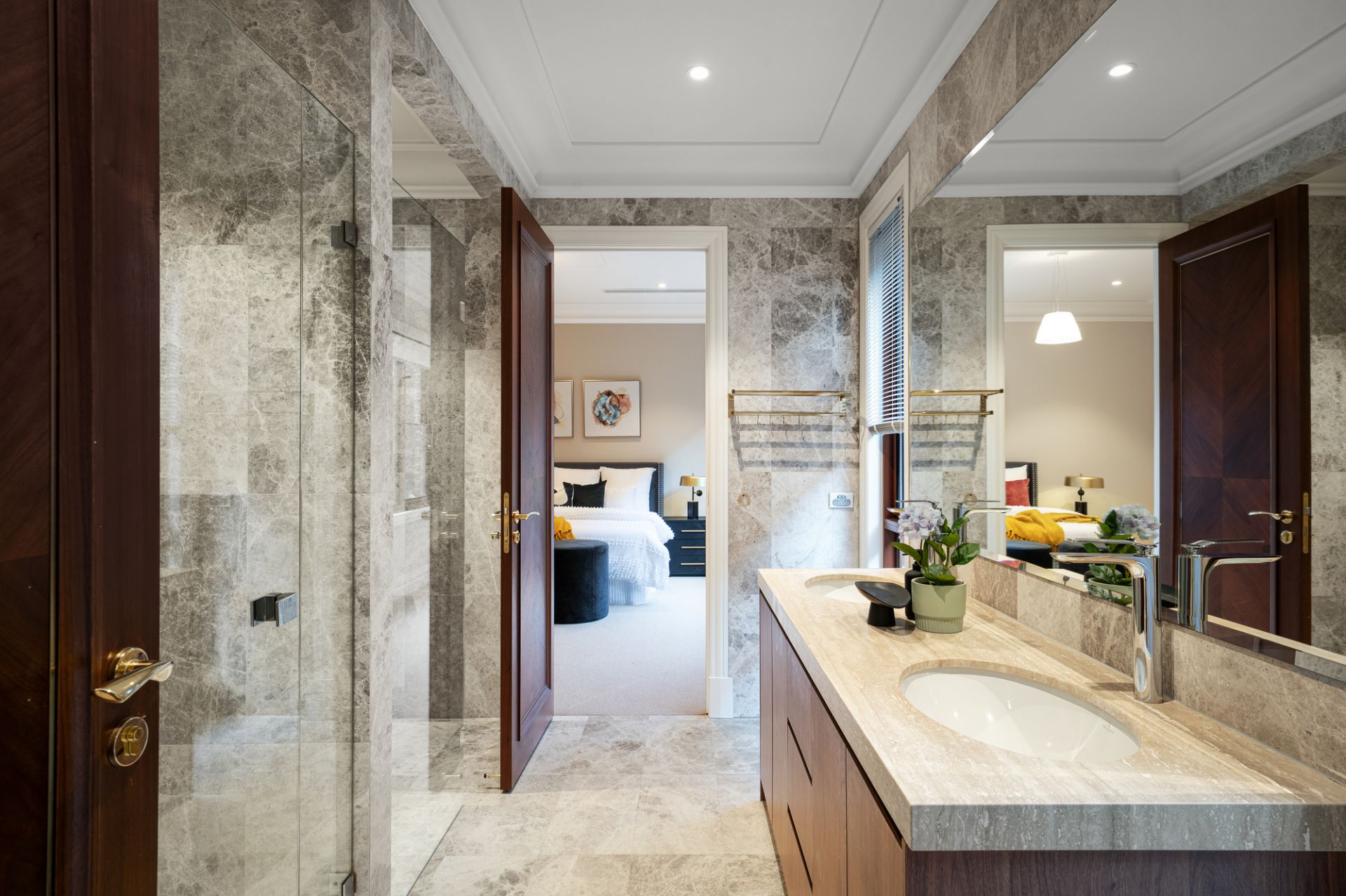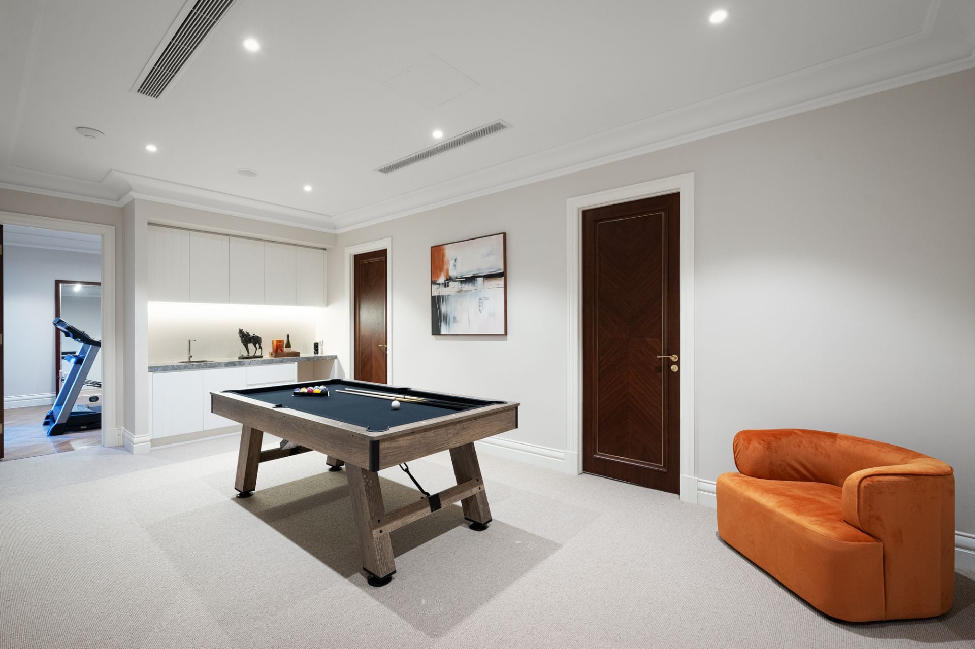 Leisure and pleasure are a high priority with a family able to relax and enjoy quality time together in a stunning home theatre, games/ media room and home gym. Further on the lower-ground-floor are two generous storerooms, a dedicated home office/ music room, and three deluxe bedrooms including two with a Jack & Jill ensuite, and an exquisite main bedroom boasting an adjoining retreat leading to rear deck, a dressing room and an exquisite marble-lined ensuite with an indulging soaker bath and an oversized shower.