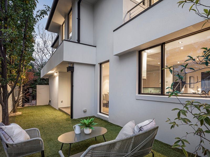 Set behind a striking architectural facade, this impeccable corner townhouse also enjoys side access from the quiet Avoca Grove cul-de-sac and showcases stylishly-appointed living and entertaining spaces.