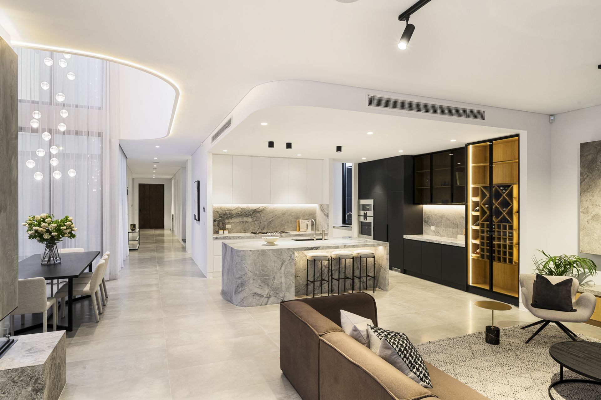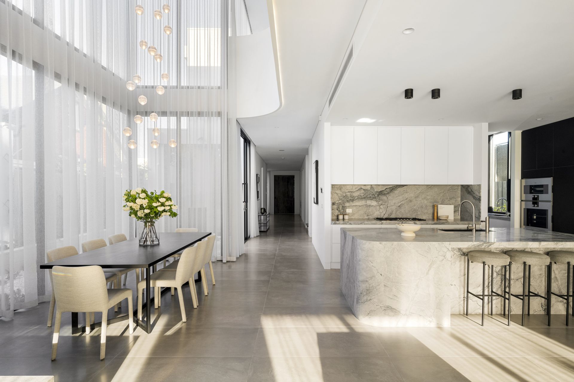 Set behind a stunning façade, the beautifully-designed residence showcases expansive living spaces, impeccable integrated joinery and bespoke designer lighting, to create a tranquil environment of effortless luxury.