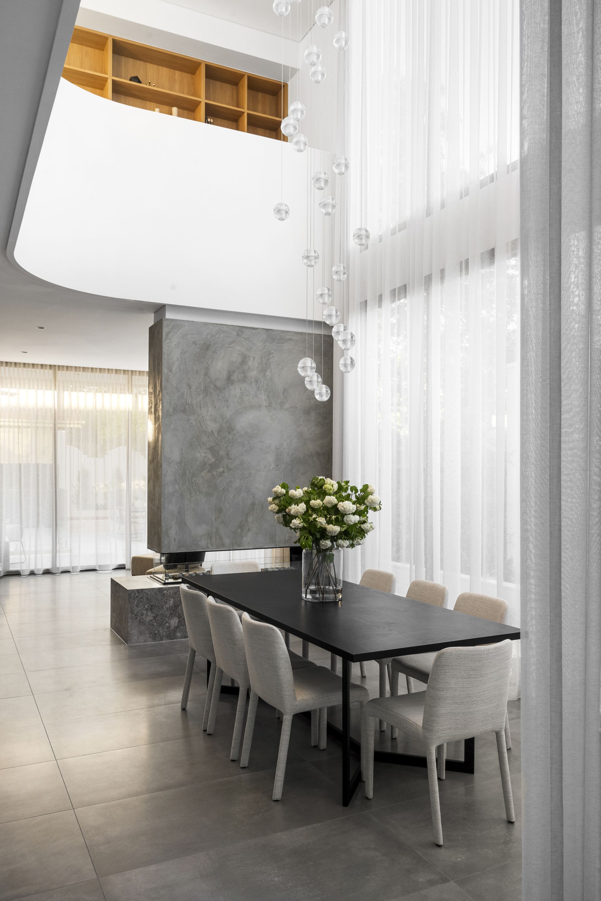 The superb floorplan effortlessly flows into a breathtaking living and dining zone at the rear which is flooded with northern light thanks to the spectacular double-height windows. A bespoke chandelier and dual-sided pebble gas fireplace to relax in front of during the colder months adds to the ambience.