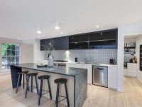 The heart of the home is undoubtedly the stunning gourmet kitchen which pairs extensive cabinetry, a 90cm five burner gas hob and two Neff ovens with an oversized stone island bench to gather around. A superbly-appointed butler's pantry adds further amenity.