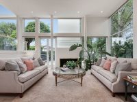 A spectacular entrance hall introduces the luxuriously large proportions and designer flair of a two-level interior where a flexible ensemble of open-planned spaces includes a dining room, living room and north-facing sitting or music room. Further is a powder room, a huge family living and dining zone opening to the front and rear gardens complemented by a large granite gourmet kitchen boasting Gaggenau and Miele appliances, plus a second powder room and a full-size laundry.