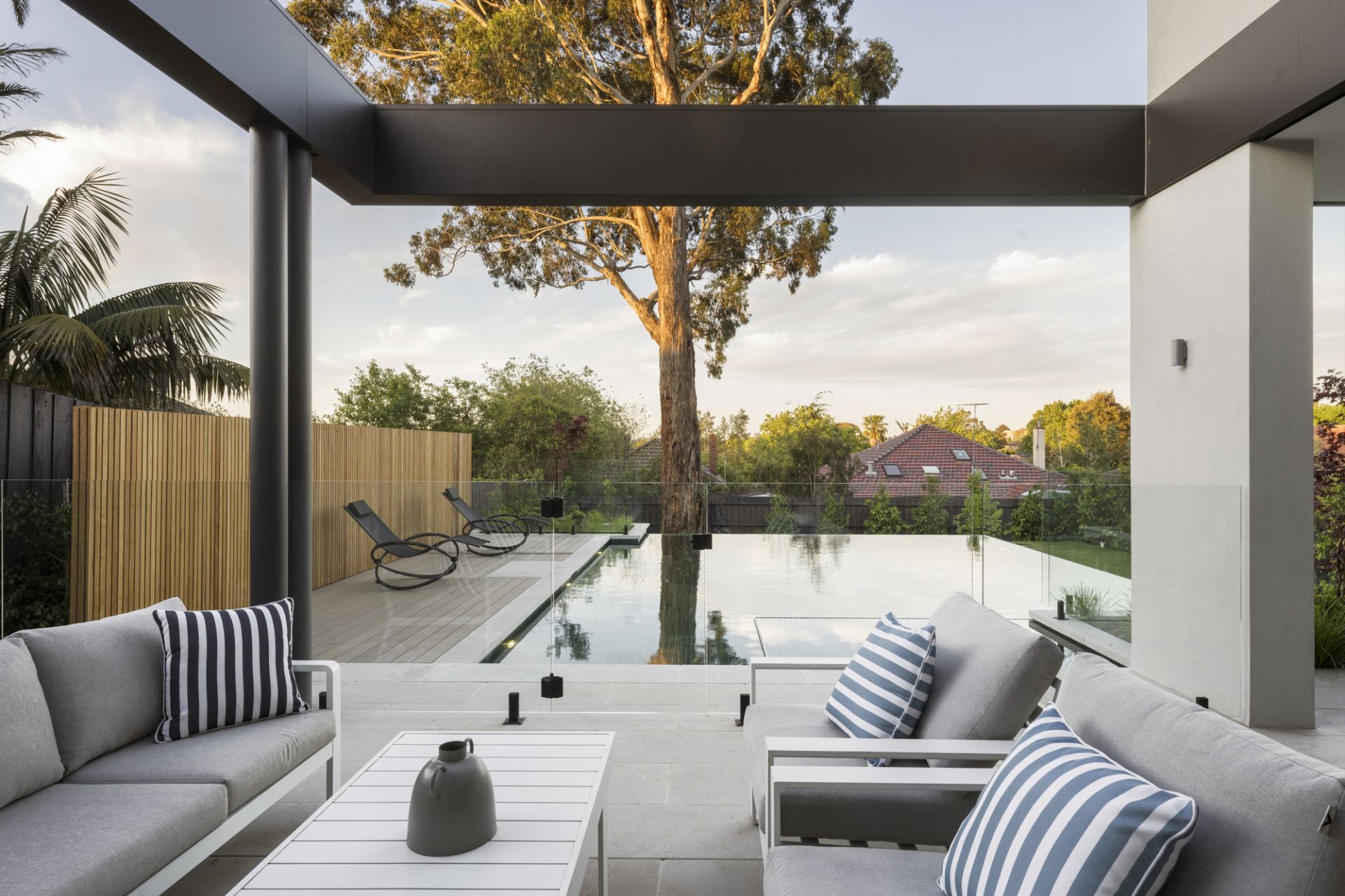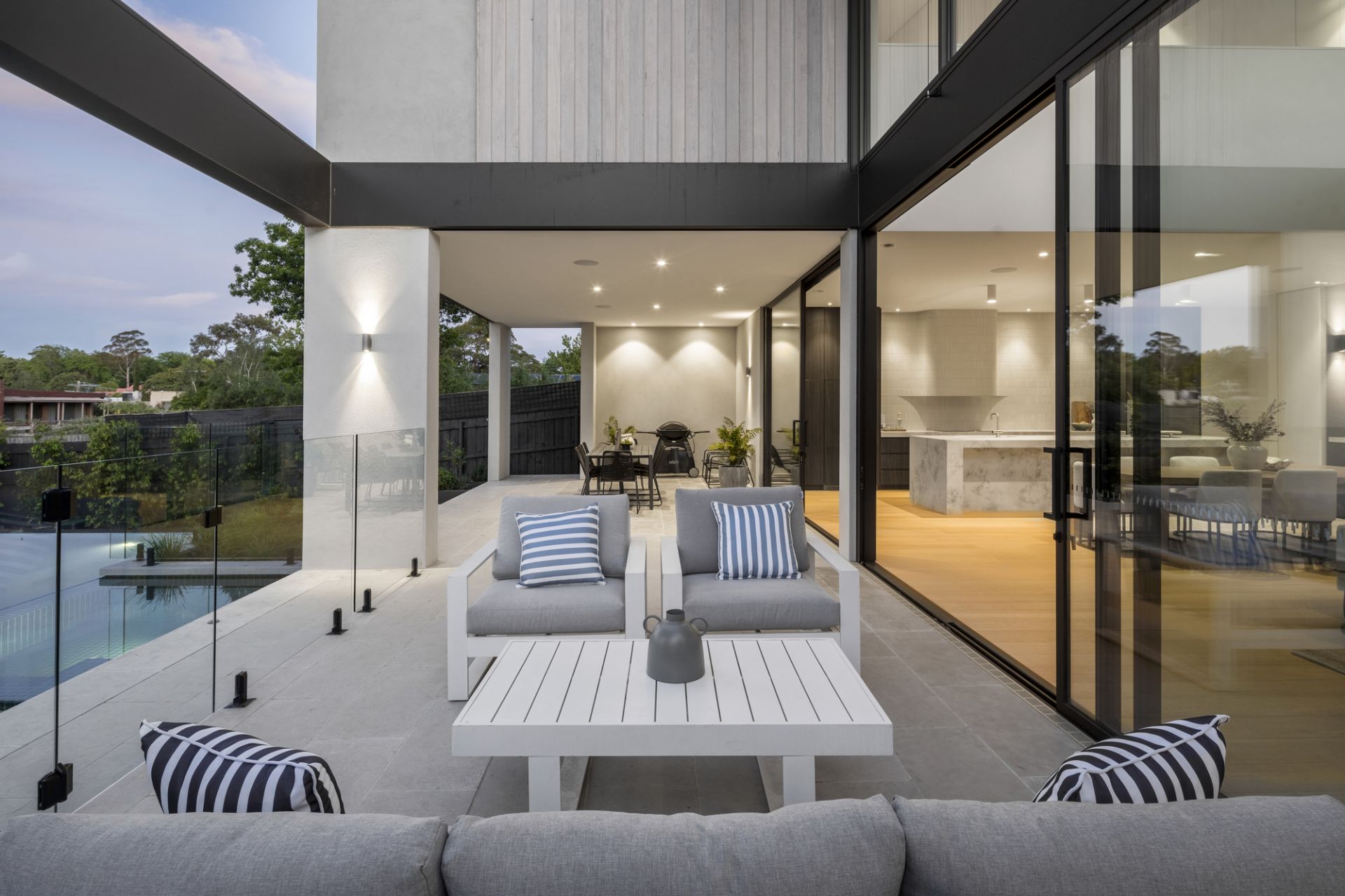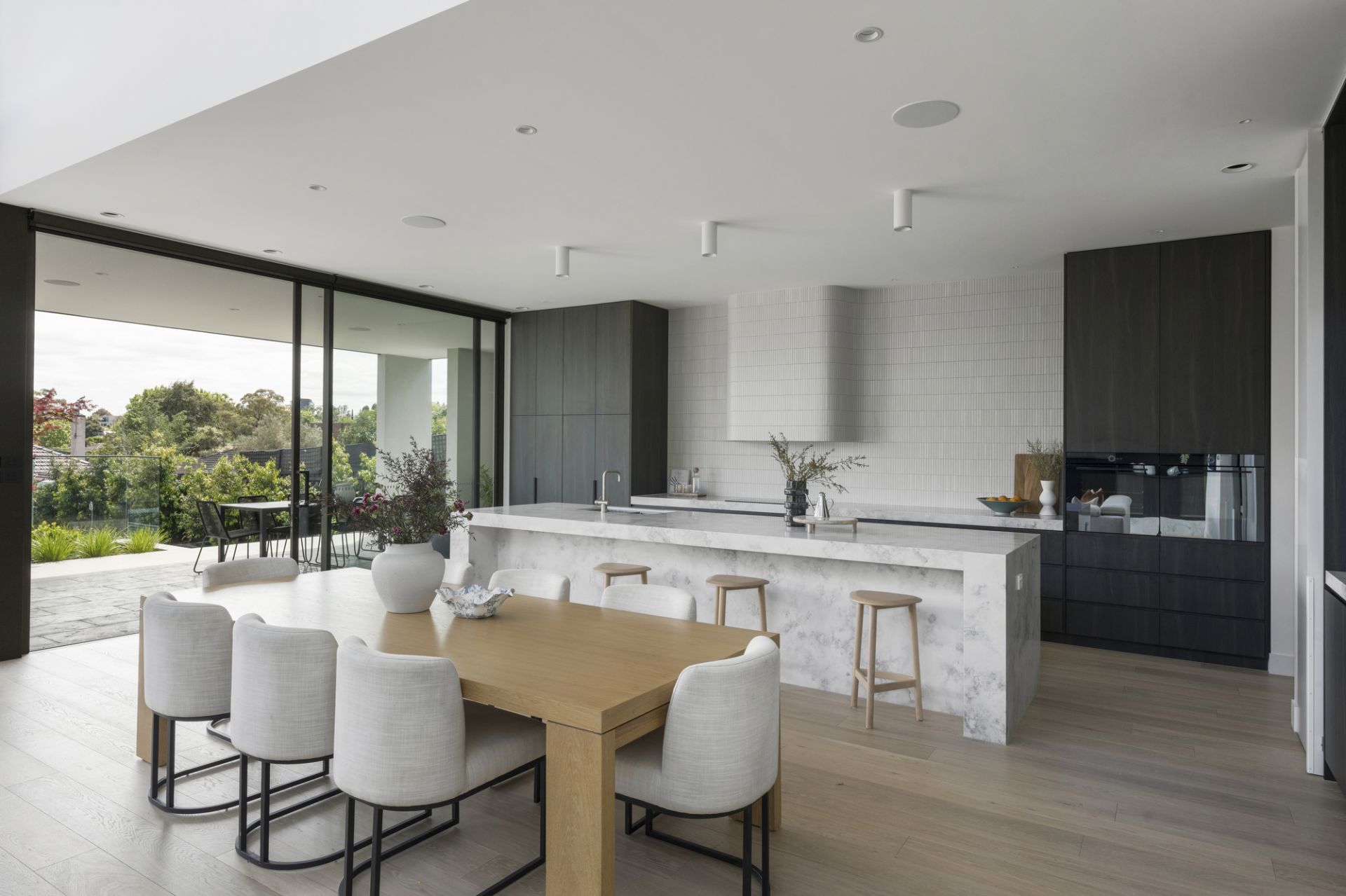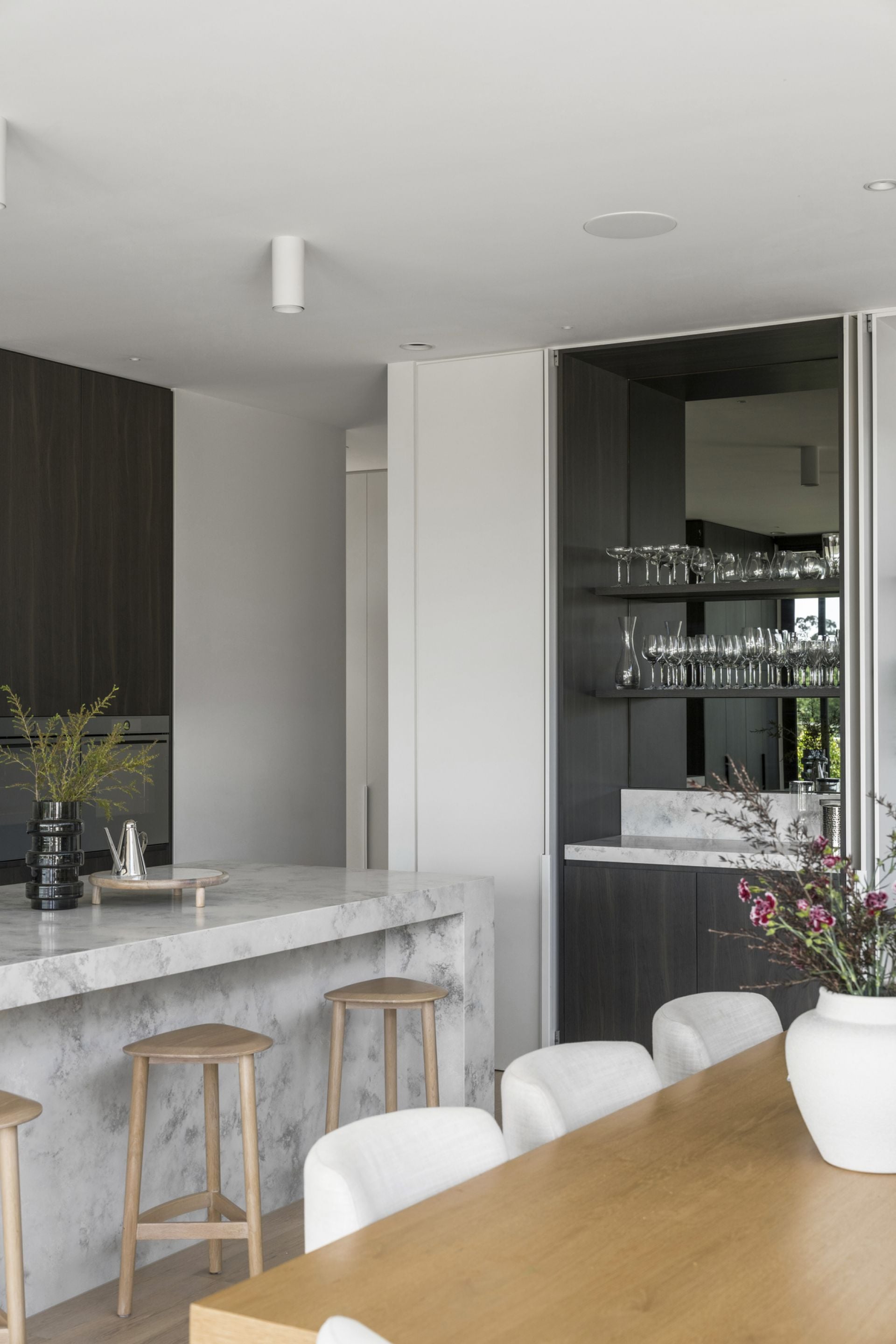 Rising with precision and prestige to command panoramic views at one of a prized lifestyle precinct’s highest points, this newly completed luxury residence from the award-winning team at Mazzei is a compelling statement of luxury and sophistication crafted with meticulous attention to detail. Broad and bold with a clean-lined contemporary façade, this expansive domain on over 1020 sqms combines substantial interior proportions, family flexibility and a stunning poolside entertaining setting.