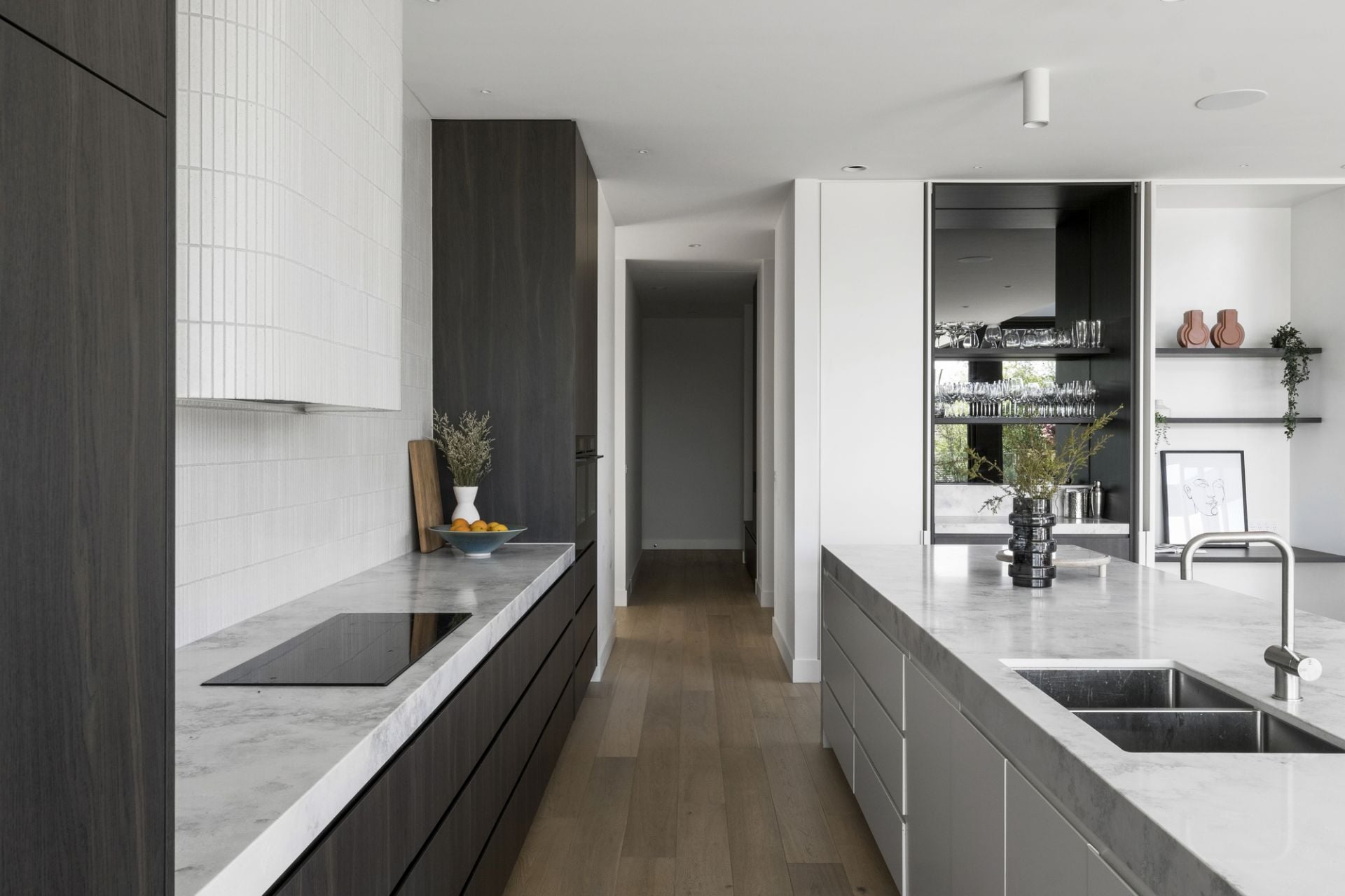 Carefully considered features designed for the utmost comfort, energy-efficiency and security are absolutely high-end and include a spacious laundry and mudroom, zoned central heating and cooling, gas fireplace, double-glazing, solar electricity with a Fronius inverter, CCTV surveillance, alarm system, speaker system, electric blinds, natural stone surfaces, superb oak floorboards, designer lighting, available lift well, automatic irrigation, remote-control gate entry and a three-car internal garage.
