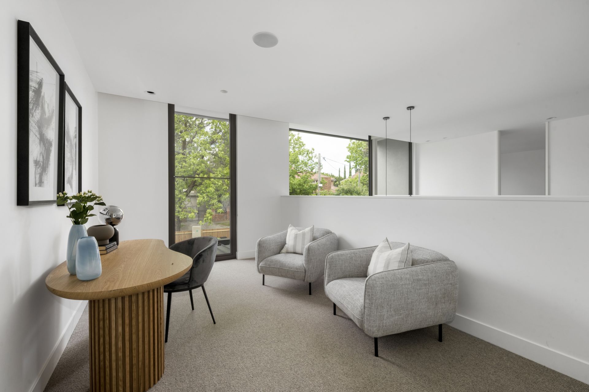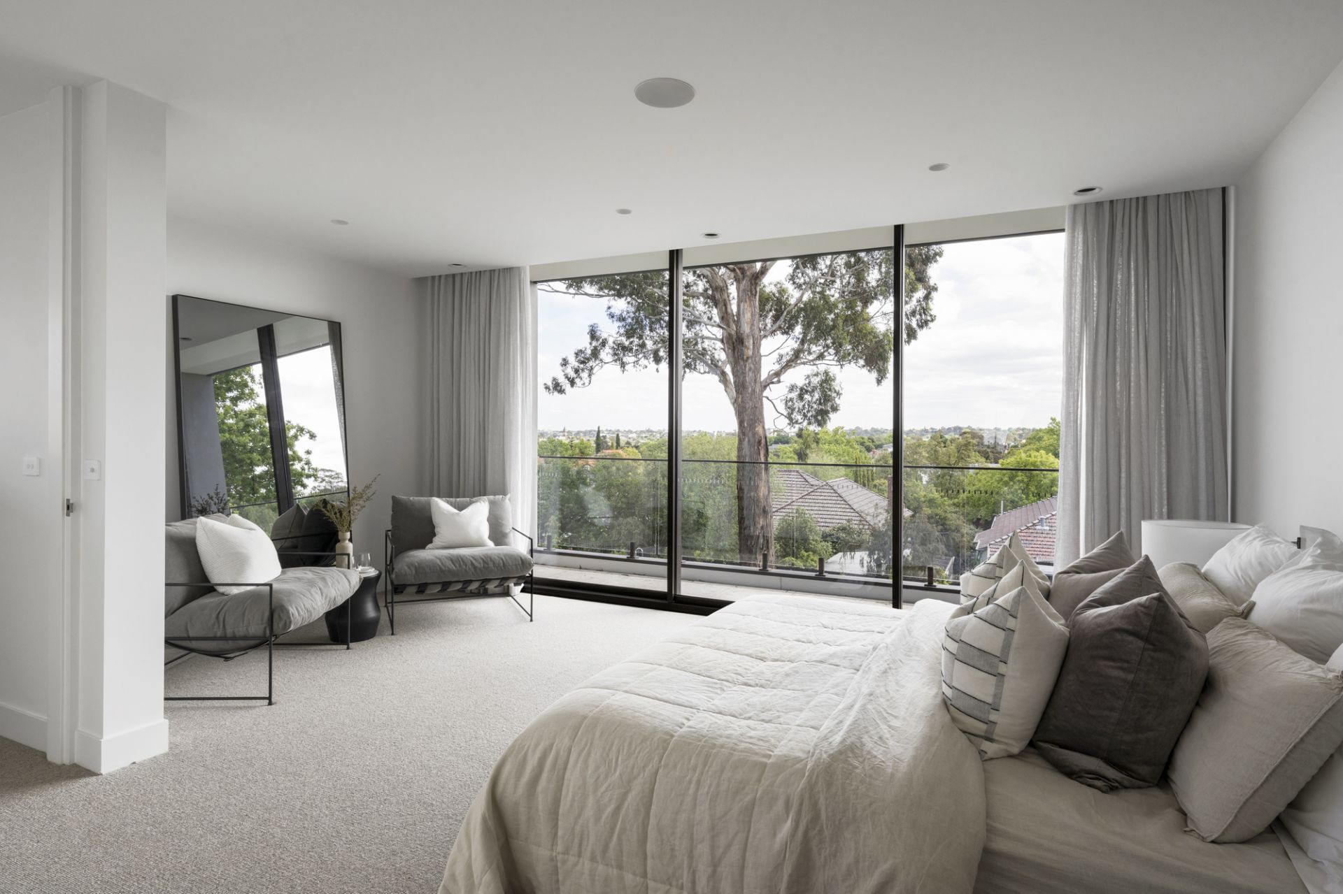 A gold-class experience for family and friends, a basement level features a fully-fitted home cinema with a bar and a connoisseur’s wine cellar along with a powder room and storage. Complemented by separate lounge and retreat/study areas, first-floor accommodation with views from Mt Macedon to the city includes four bedrooms with private ensuites where a breathtaking main showcases a bespoke dressing room, deluxe freestanding bath ensuite and a sensational balcony.