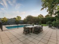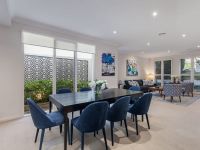 Overlooking the rear garden oasis accessed through triple sliding doors is a superb family living and dining zone flowing to an excellent granite-topped entertainers' kitchen featuring European stainless-steel appliances (induction cooktop) and a walk-in pantry. Ideal for parties and private family relaxation, a wide automatic retractable awning covers a huge alfresco terrace adjoining a self-cleaning solar heated swimming pool backdropped by a level expanse of hedge-lined lawn.