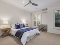 Accommodation of spacious proportions includes a downstairs main bedroom with a walk-in robe and beautiful double-shower ensuite, while located upstairs is a family bathroom and four huge bedrooms all with built-in robes and ceiling fans. A wide entrance hallway on polished floorboards leads to a serene sitting and dining room, an executive-style study/office with storage, a powder room and a laundry with chute, drying cupboard, walk-in linen press and cellaring (dual Vintec wine fridges).