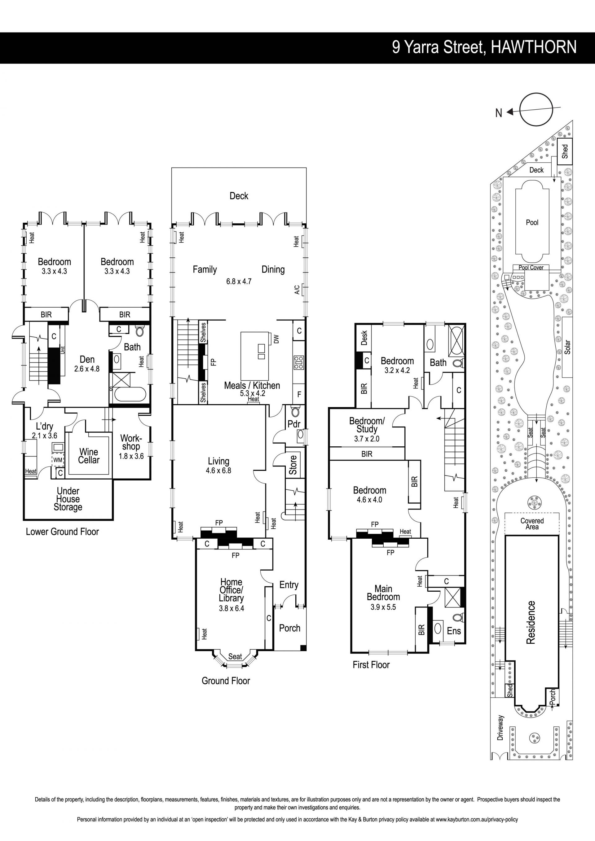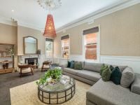 Top-floor bedrooms all with built-in robes offer sought-after flexibility and include a main with double-shower ensuite and a study or 6th bedroom complemented by an immaculate bathroom. Other features of this captivating landmark home include hydronic heating, split-system air-conditioning, gas fireplaces, heated towel rails, plantation shutters, abundant storage plus ample gated off-street parking.