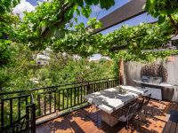 An elegant arched hallway with wide oak floorboards reveals an upper ground-floor layout including executive office/library, substantial sitting room, excellent gourmet kitchen with Ilve/Miele stainless-steel appliances and symmetrical sky-lit family and dining areas opening to an elevated entertainment deck with a gorgeous outlook. The lower ground-floor comprises of two large bedrooms (BIRs, French doors), lounge room, chic family bathroom, laundry, wine cellar and workshop.