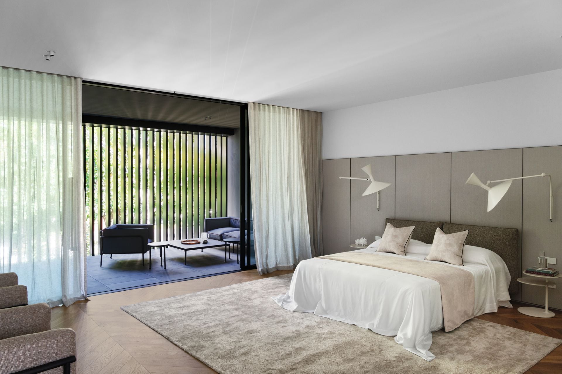 The first-floor accommodation wing is a masterclass in luxury and refinement, comprising four opulent bedroom suites, each with a bespoke ensuite featuring Italian porcelain tiling, underfloor heating, fluted glass detailing, and custom-designed vanities. The palatial primary suite, occupying the entire front wing, is a sanctuary of indulgence, defined by a breathtaking circular freestanding bath, a private steam room, an expansive dressing room, and a vast terrace with tranquil treetop vistas. Adding to the home’s exceptional liveability, a second master suite offers a similarly elevated level of comfort, providing a private retreat ideal for multi-generational living or distinguished guest accommodation.