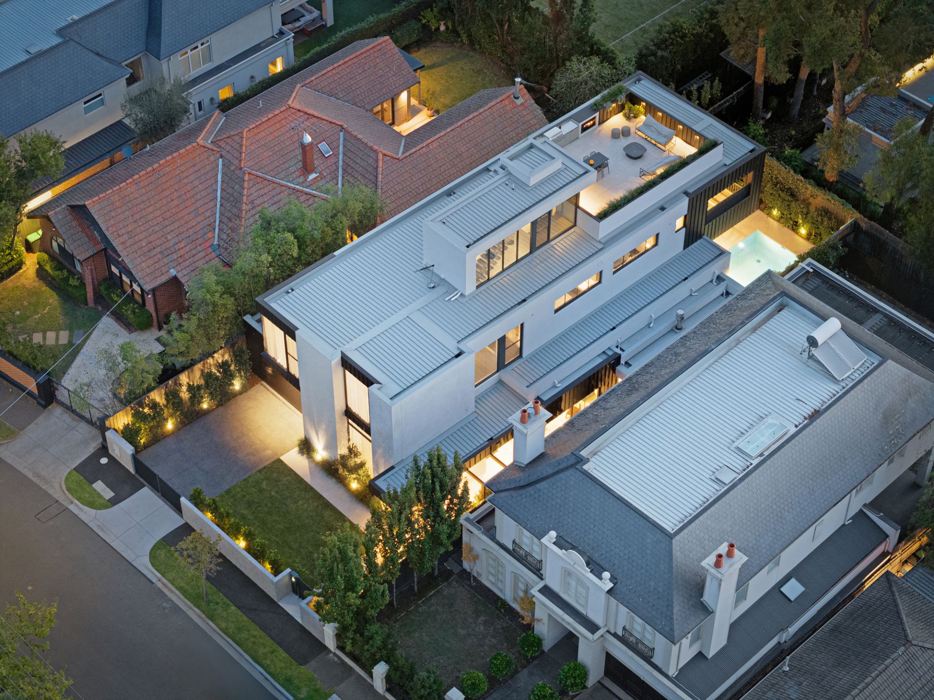 Hawthorn’s prestigious Scotch Hill precinct delivers a stunning new approach to state-of-the-art, indoor-outdoor family living and entertaining with this just-completed luxury residence. Impeccably and innovatively designed and built by award-winning Pansec Constructions, this magnificent domain’s compelling interior spaces are coupled with an all-levels lift, self-cleaning pool oasis and a vast rooftop terrace capturing sweeping city-to-ranges views.