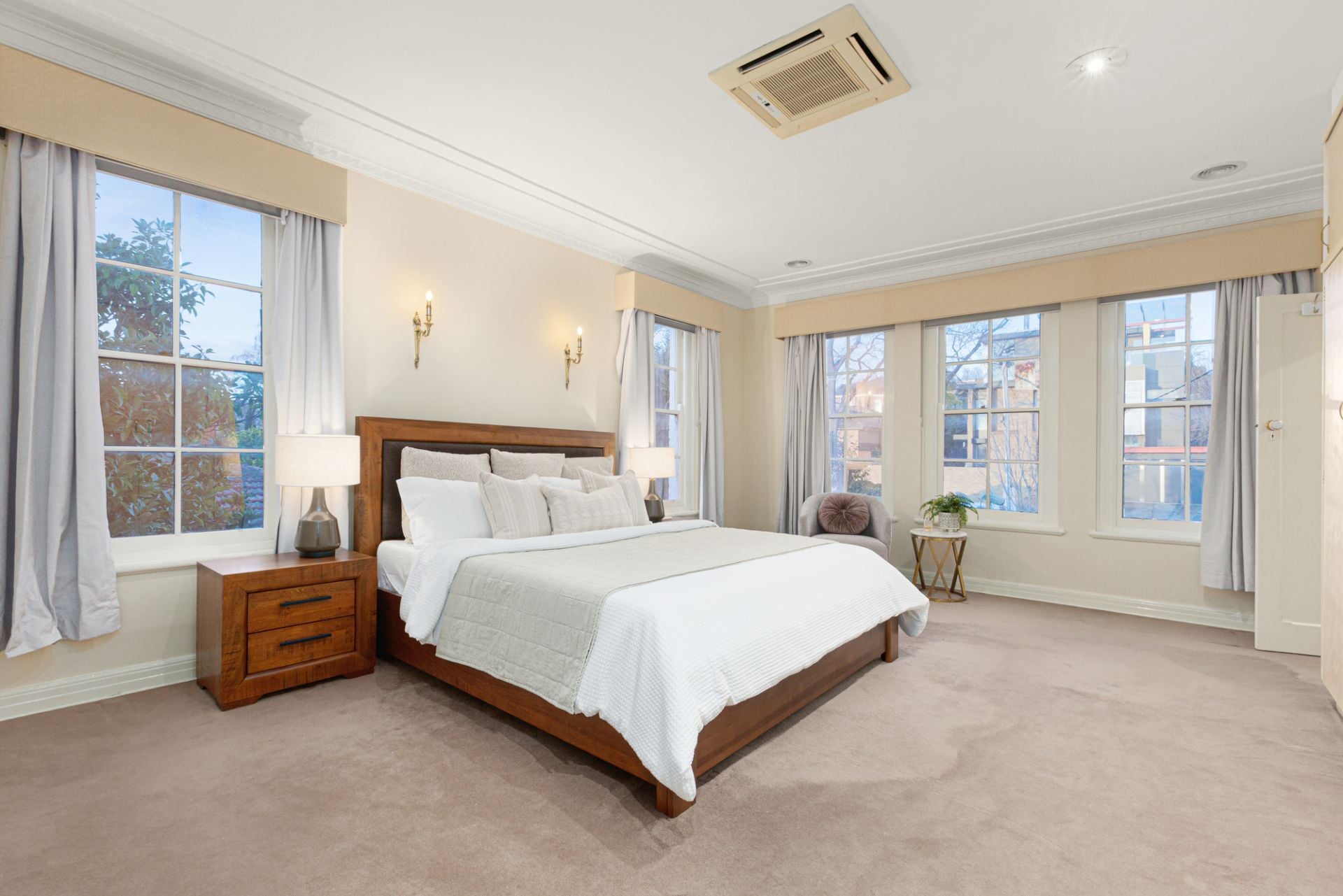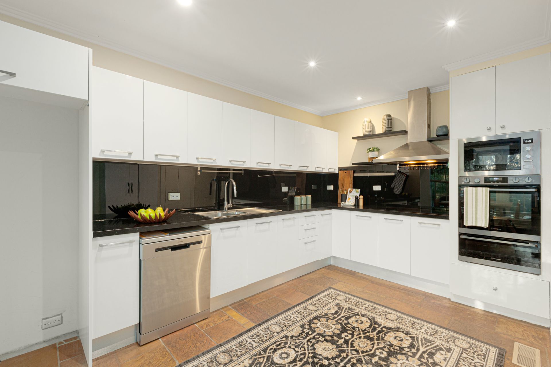 Streams of northerly light filter throughout large formal lounge (open fireplace) and dining rooms that open to a sun-splashed garden patio, with the flowing ground-floor layout extending to a contemporary gourmet kitchen appointed with stainless-steel appliances. Adjoining is a casual dining area before a generously proportioned family room with both overlooking the wide expanses of a secluded rear garden. Also includes a powder room, laundry, ducted heating and air-conditioning.