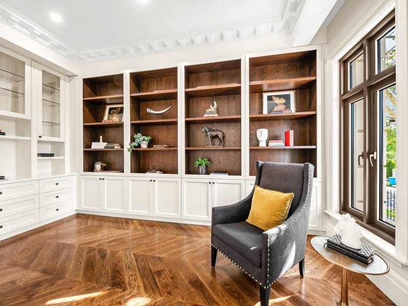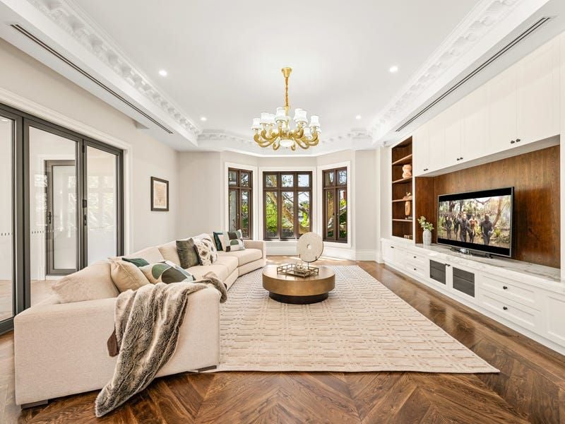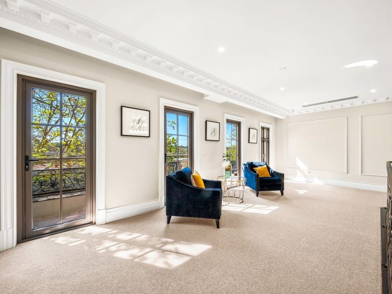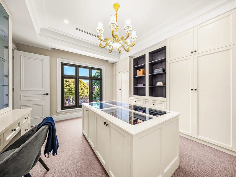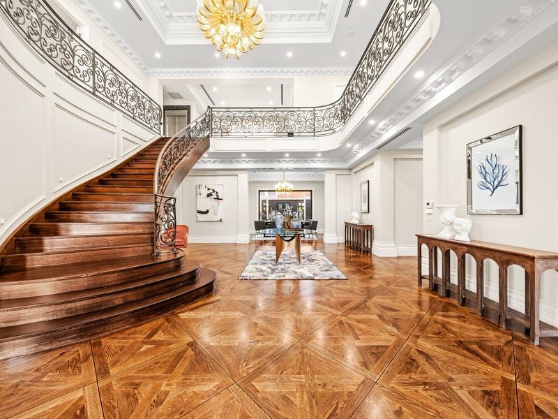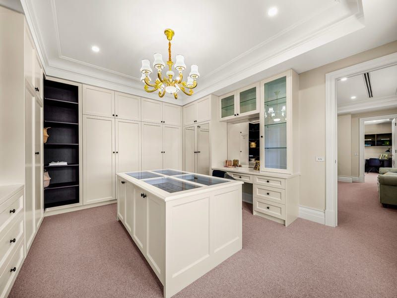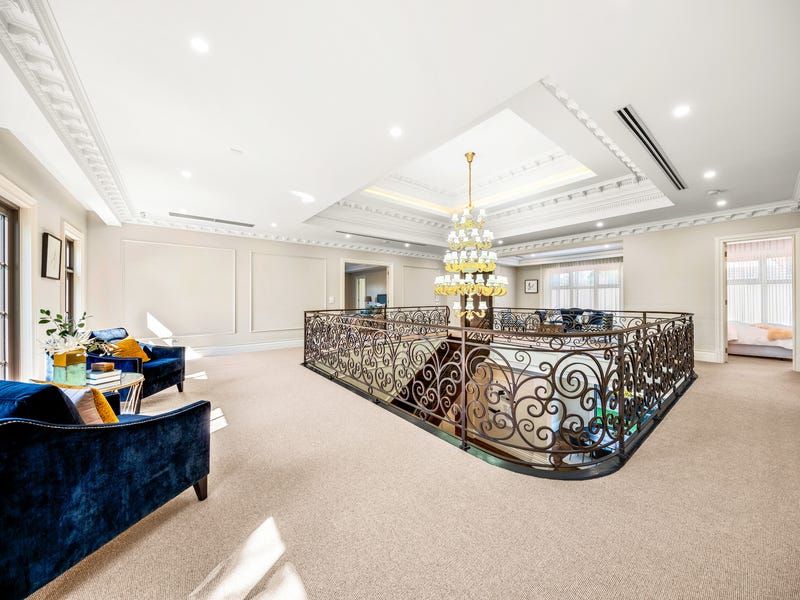 The basement level features a lounge and bar, tasting room and showcase cellar, bathroom, fitted home cinema, a gym, Scandinavian sauna and a storeroom. Designed around the grand reception hall with sitting areas and a balcony, upstairs accommodation is decidedly luxe boasting two ensuite bedrooms with walk-in robes and two further bedrooms with dressing rooms and exquisite ensuites including a palatial main with an executive study.