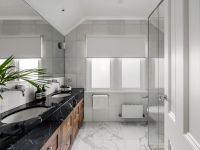 Located on the second-level is additional accommodation comprising main bedroom with walk-in robe and double-shower ensuite, two bedrooms with desks and BIRs, a fourth bathroom (spa bath) and a powder room. This captivating residence is kept entirely comfortable with hydronic heating, ducted reverse-cycle air-conditioning, CCTV cameras, alarm plus there is roof storage, garden irrigation and automatic gates on Stawell and Barry Streets for secure off-street parking.