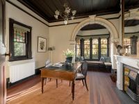 Glorious garden with a fountain pond and parterre entrance precedes a double-arch hallway that introduces high Californian redwood timber ceilings, antique light fittings and solid Jarrah floorboards that along with marble open fireplaces in an ensemble of original rooms creates a marvellous ambience of grandeur and refinement. Perfectly flexible for a family to configure as desired are formal sitting and dining rooms, an executive study and two versatile ground-floor bedrooms.