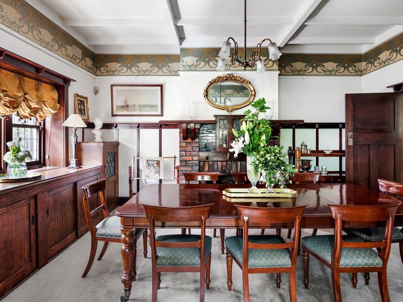 An impressive entrance portico and paneled hallway reveal an ensemble of beautiful formal spaces highlighting rich Art Nouveau detail including a sitting room warmed by a gas fireplace and sumptuous dining room with exquisite cabinetry and open fireplace. An attractive kitchen lined in solid granite features stainless-steel appliances and flows to a family living room opening to an undercover entertainment deck and an expanse of north facing lush gardens including a versatile separate studio/workshop.