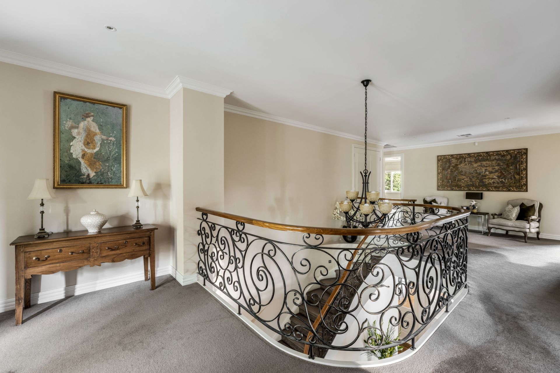 An outstanding street presence beyond overarching plane trees reveals an expansive interior where a grand staircase hallway on herringbone oak parquetry launches a magnificent three-level layout designed to indulge a discerning family. An executive study, ground-floor bathroom, laundry and formal sitting (gas FP) and dining rooms provide excellent functionality with basement access down to a versatile games room/bar, large connoisseur’s wine cellar and a vast remote-control garage.