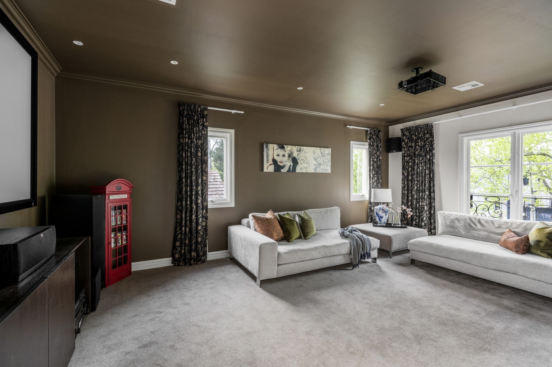 Exceptional first-floor accommodation comprises four beautifully-appointed bedrooms with a combination of walk-in and built-in robes where each adjoins an immaculate ensuite including the main which showcases next-level space, style and luxury. Further is a dedicated home cinema with a full-screen projector for fabulous movie nights, a flexible children’s retreat/lounge and a covered north-facing balcony.