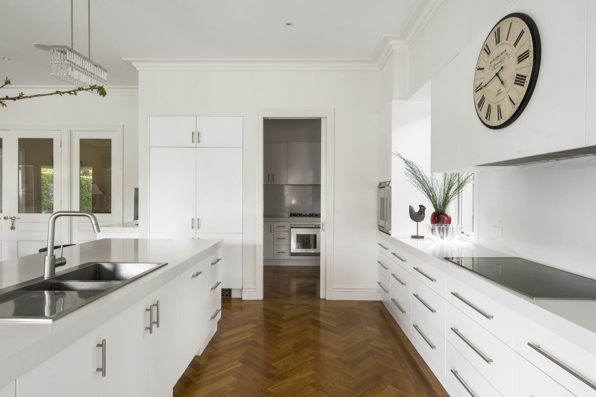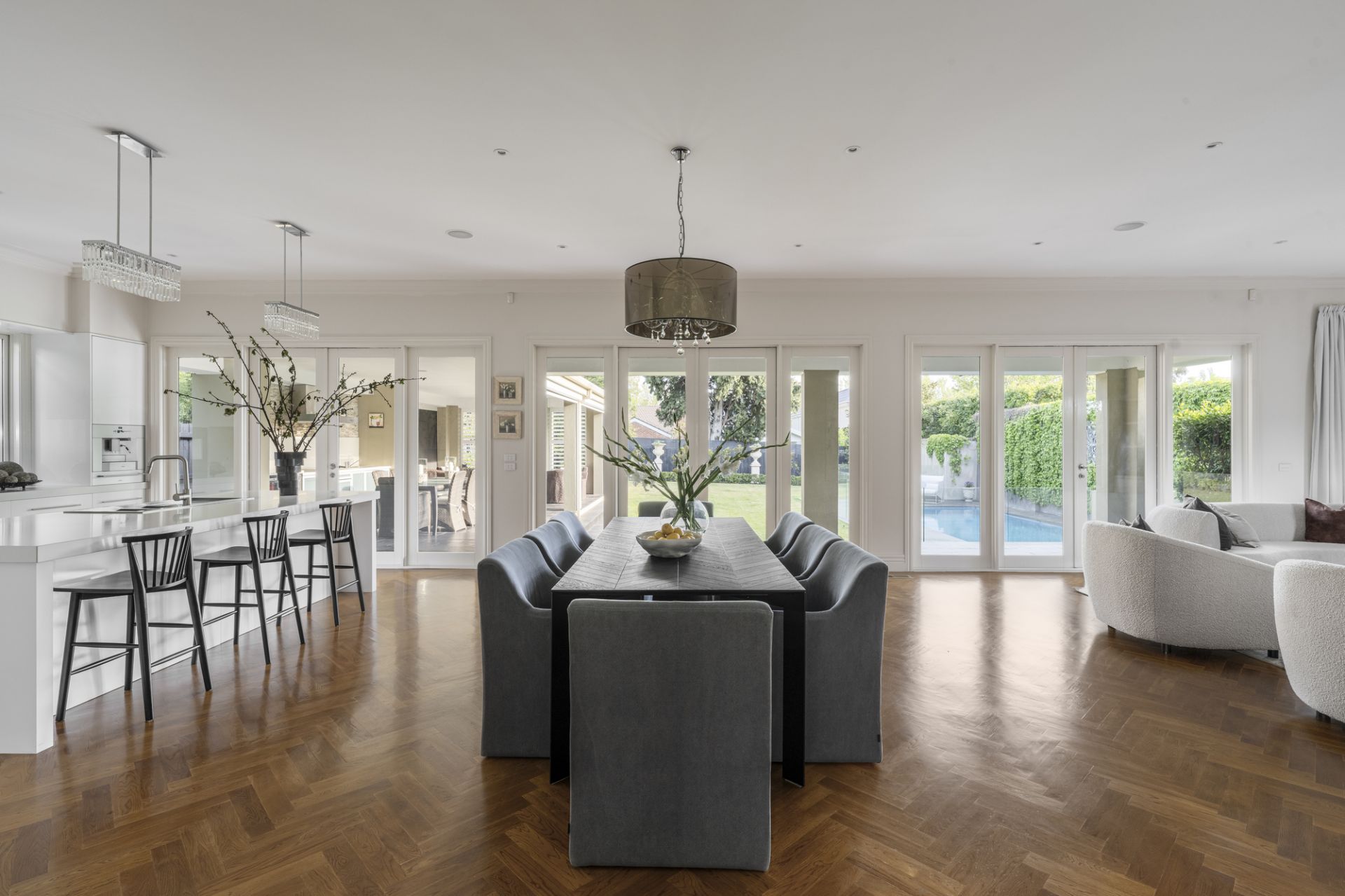 An expansive open-plan family living and dining zone offers seamless connection to the rear garden and flows to a magnificent kitchen topped in stone that boasts Miele and Gaggenau appliances (induction cooktop, oven, dishwasher, coffee machine, Liebherr fridge/freezer) and a butler’s pantry (gas cooktop, oven, AEG dishwasher) - certain to impress and inspire the fussiest home chef.