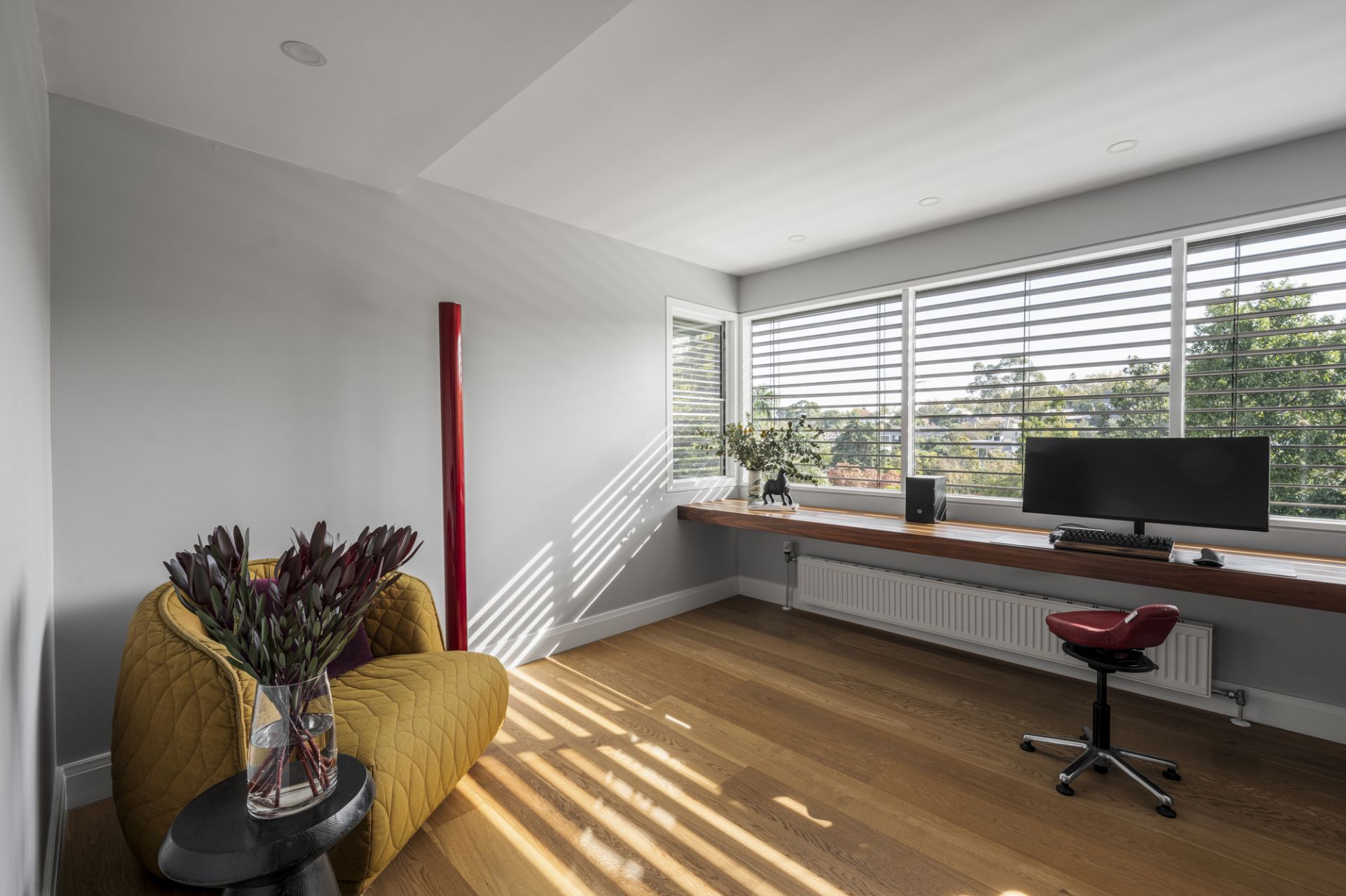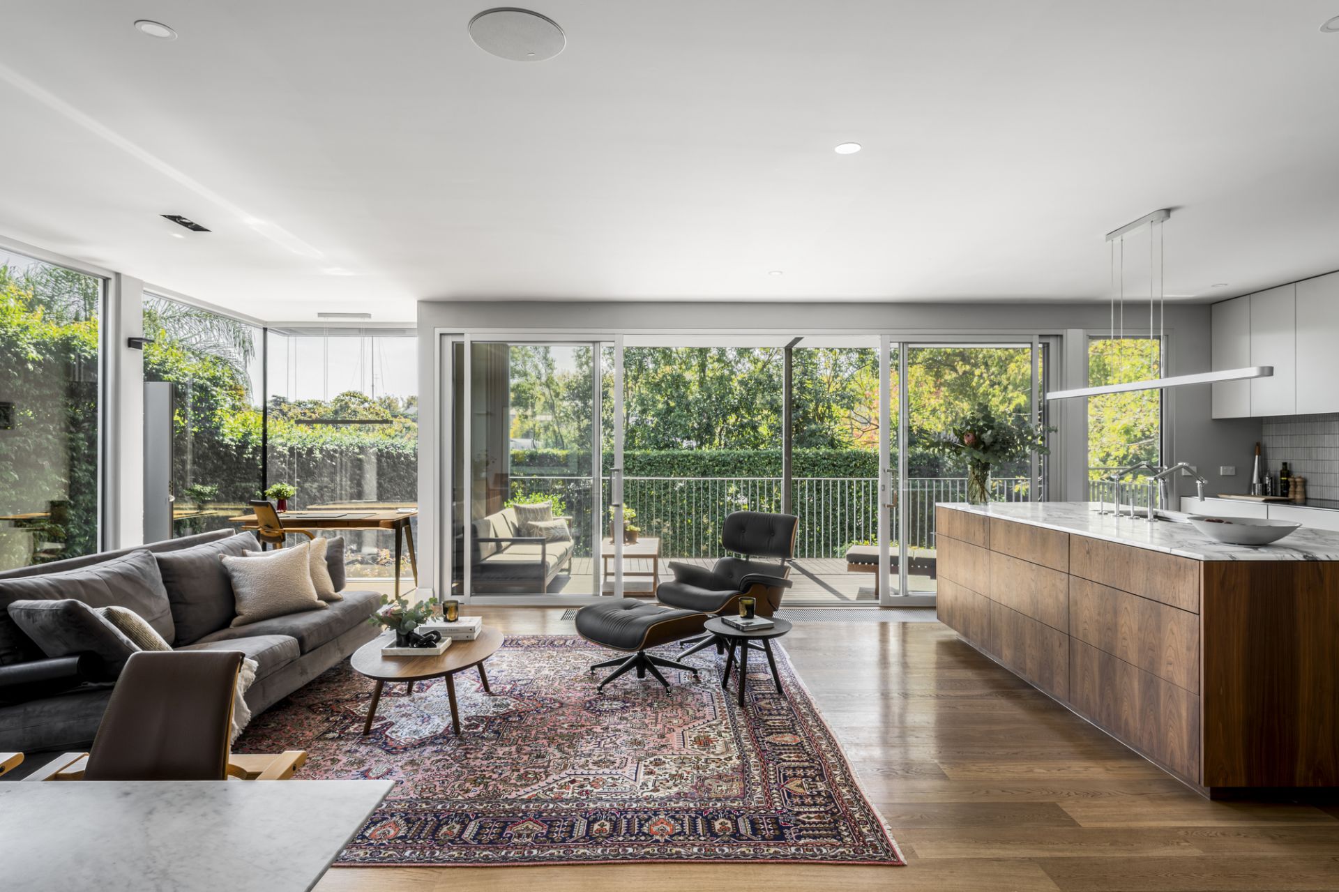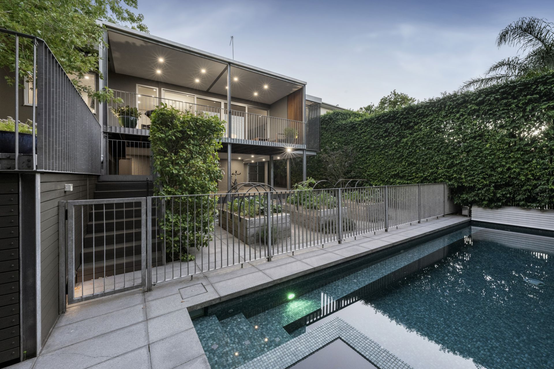 Elevated amid secure and leafy landscaped gardens with a north-facing rear pool oasis and sweeping views over Studley Park, this architect-enhanced four bedroom and study residence showcases high-end sophistication with luxurious features and finishes in an environmentally-conscious and award-winning renovated setting. Tucked away for sought-after privacy, this impeccably curated home filled with natural light is a beautiful indoor-outdoor family sanctuary at a premium Kew address.