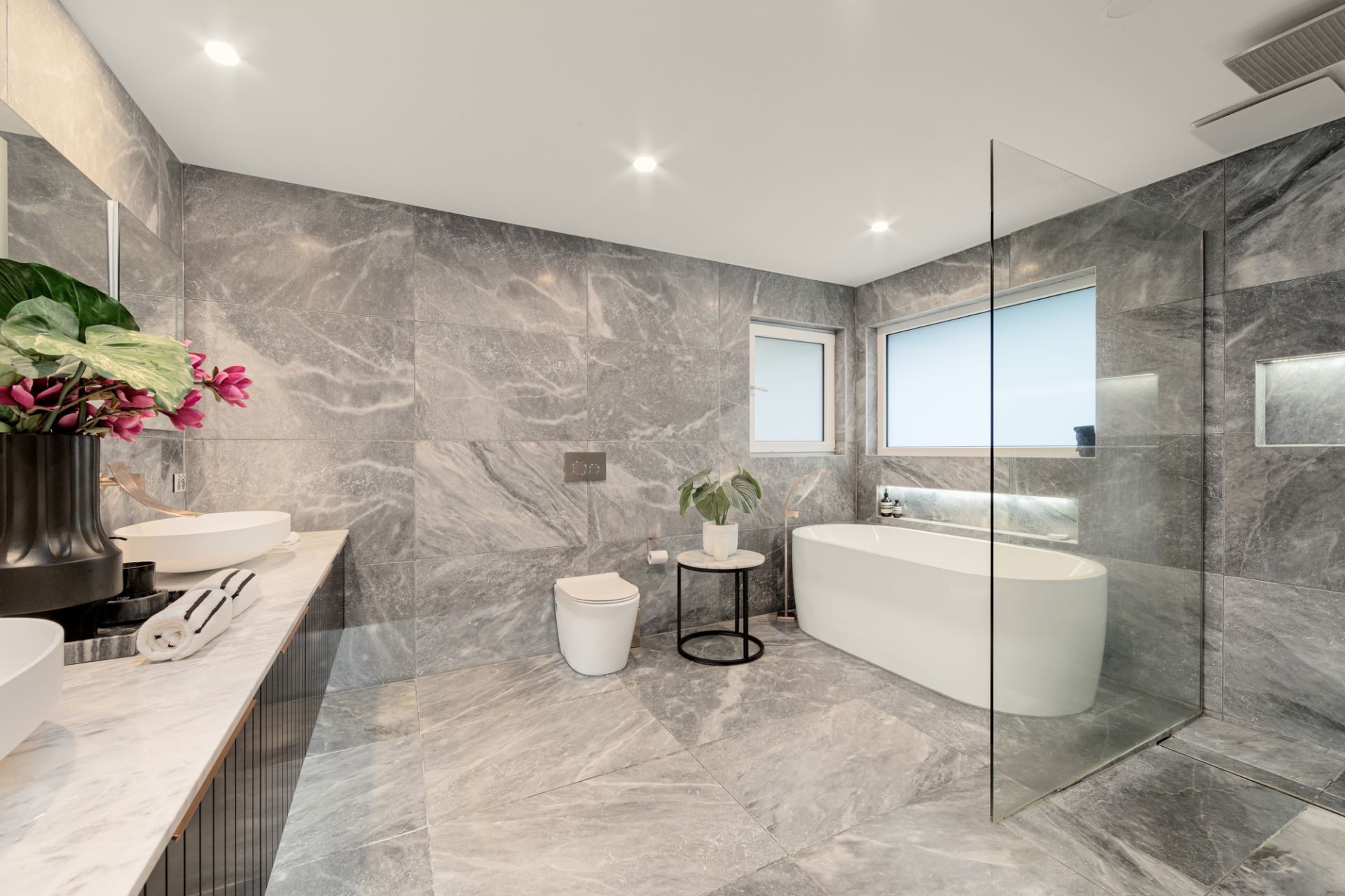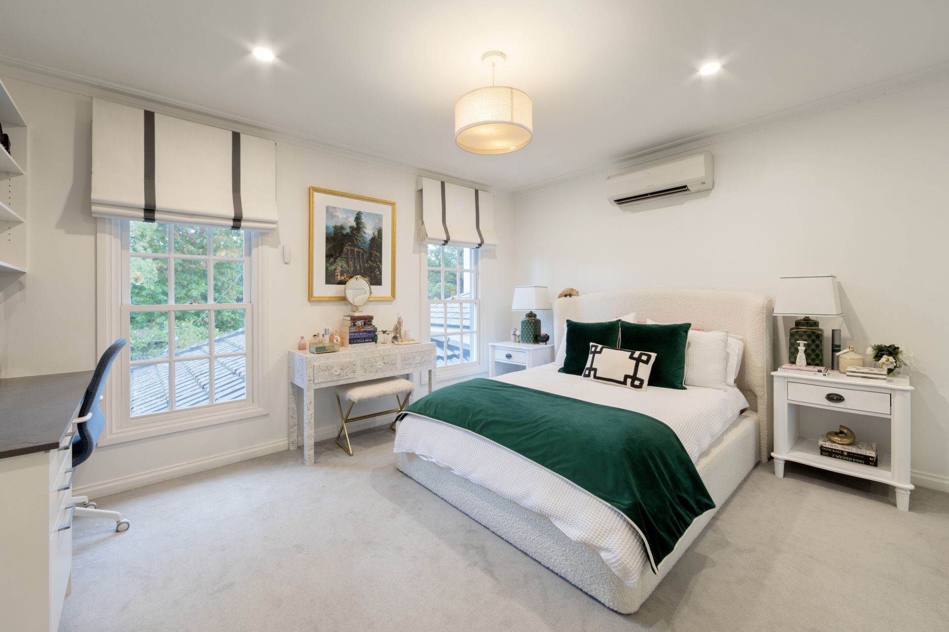 A versatile ground-floor fitted study or bedroom precedes outstanding accommodation located upstairs that complemented by a lounge retreat and family bathroom, comprises of four excellent bedrooms including three with fitted desks, custom robes and split-system air-conditioning, while the large main suite is a private domain with treetop aspects offering a spacious walk-in robe and a deluxe ensuite boasting a freestanding spa-bath, designer rose-gold tapware and an oversized rain-shower.