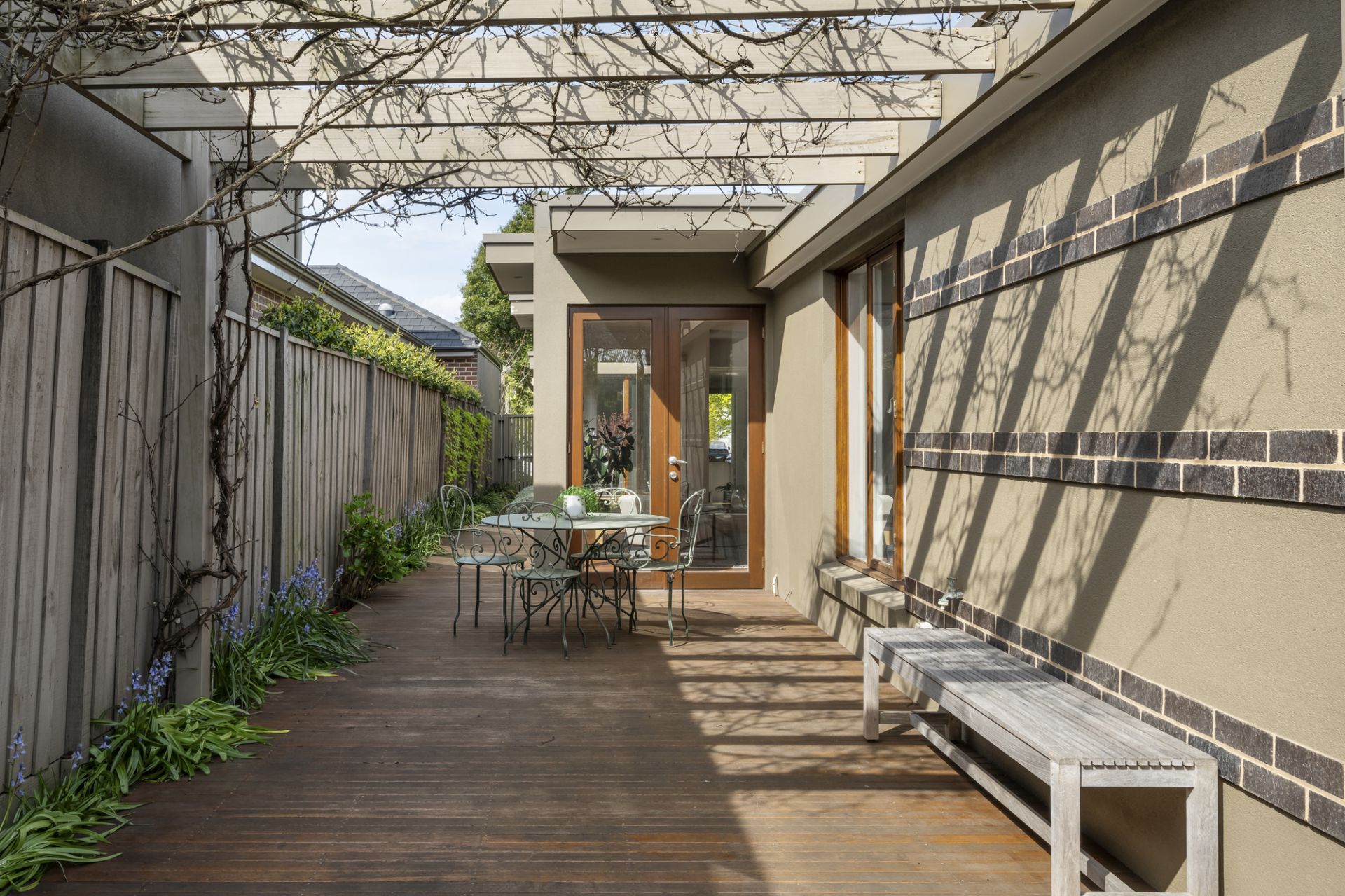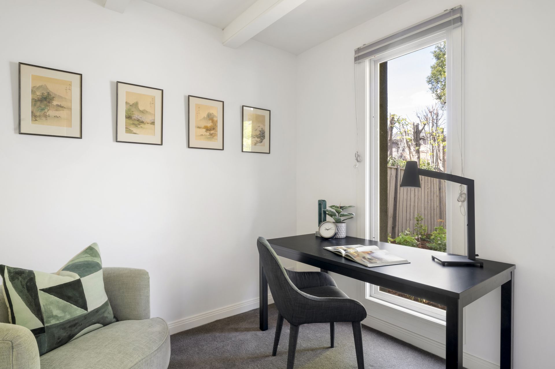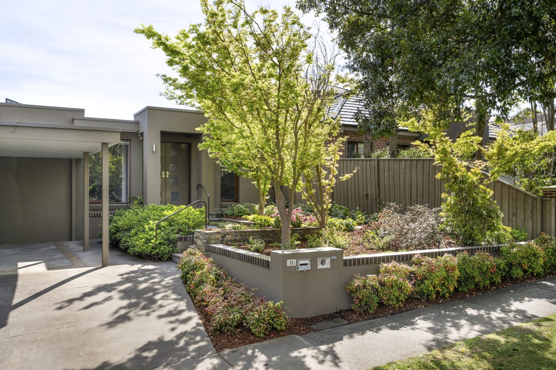 A tranquil flowering front garden featuring glorious Japanese maples sets the tone with the home’s signature focus on light and space instantly apparent as the layout unfolds through a tiled entrance foyer to a quiet study offering the perfect work-from-home space and a stylish main bedroom with a walk-in robe and a well-appointed ensuite including a heated towel rail. Adjoining living and dining rooms warmed by a HeatnGlo gas fireplace enjoy natural light and a picturesque garden backdrop.