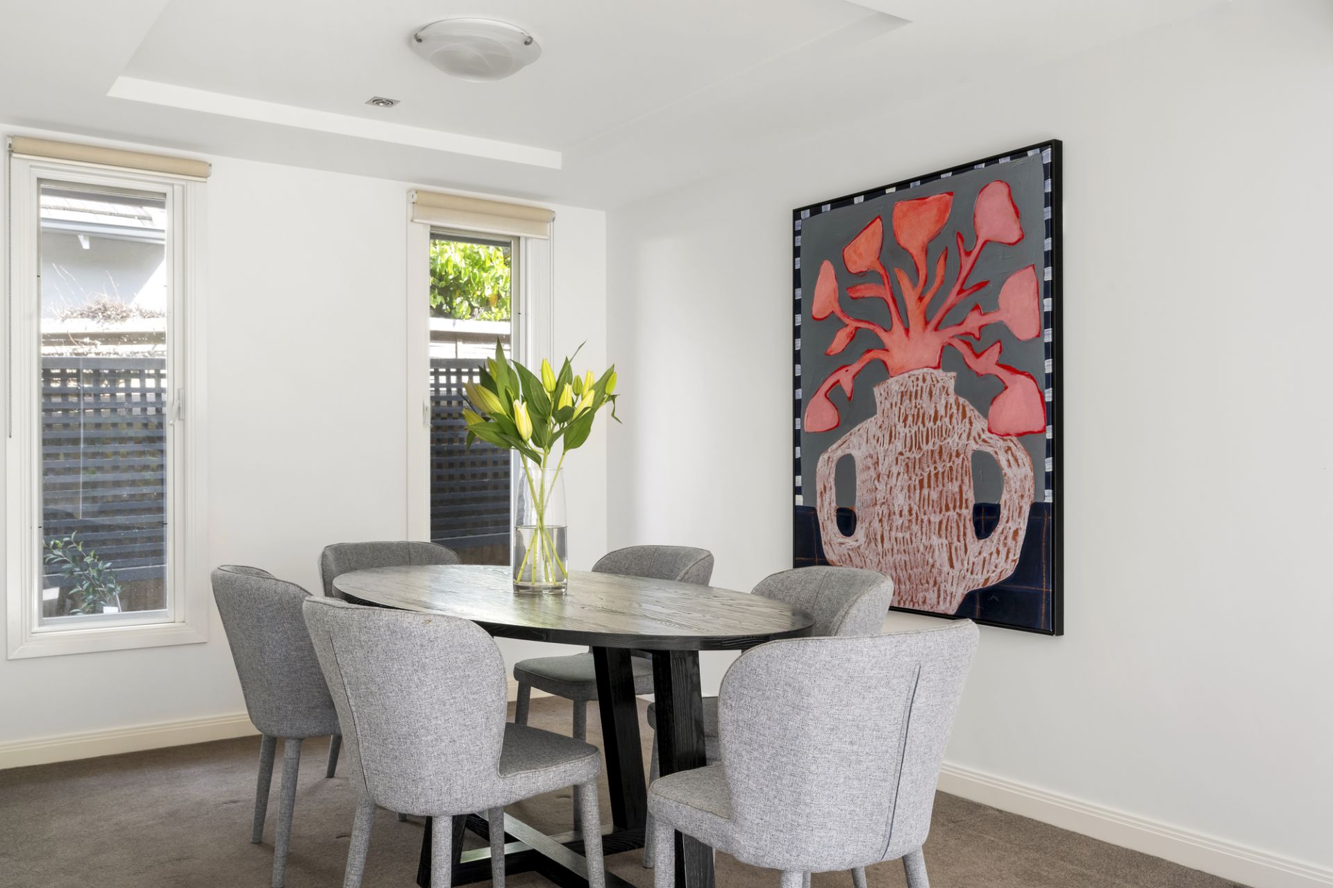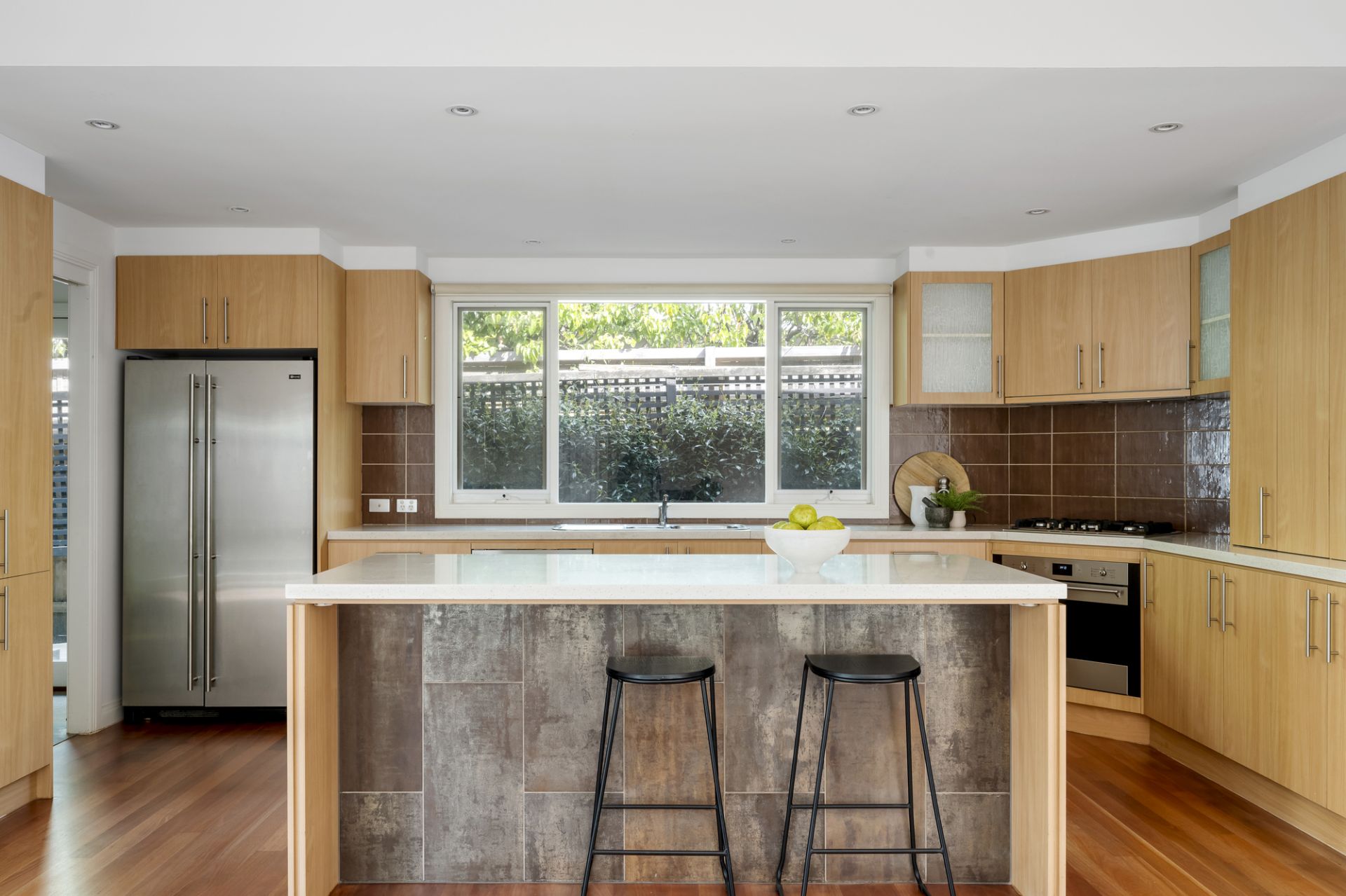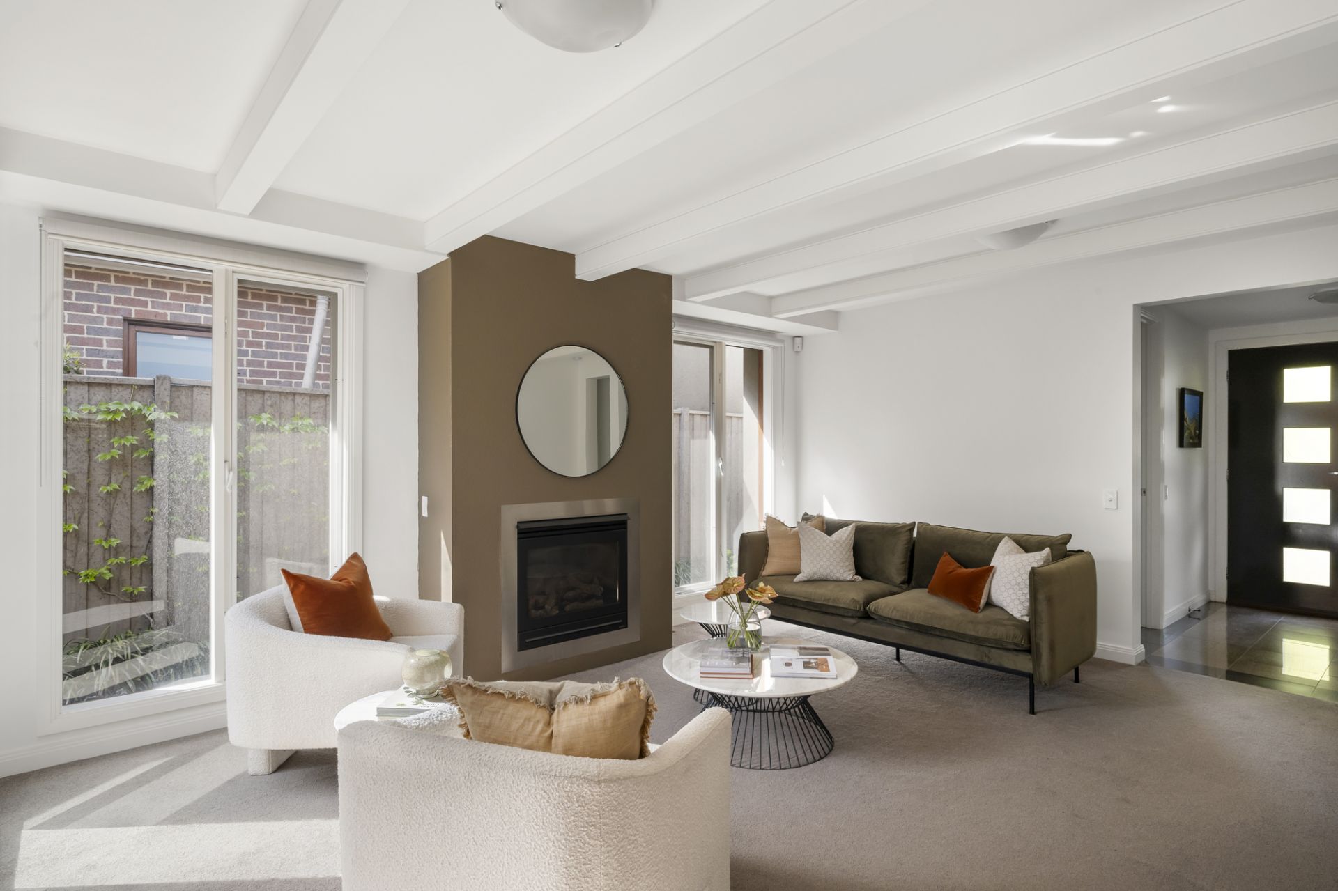 A tranquil flowering front garden featuring glorious Japanese maples sets the tone with the home’s signature focus on light and space instantly apparent as the layout unfolds through a tiled entrance foyer to a quiet study offering the perfect work-from-home space and a stylish main bedroom with a walk-in robe and a well-appointed ensuite including a heated towel rail. Adjoining living and dining rooms warmed by a HeatnGlo gas fireplace enjoy natural light and a picturesque garden backdrop.
