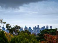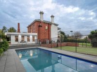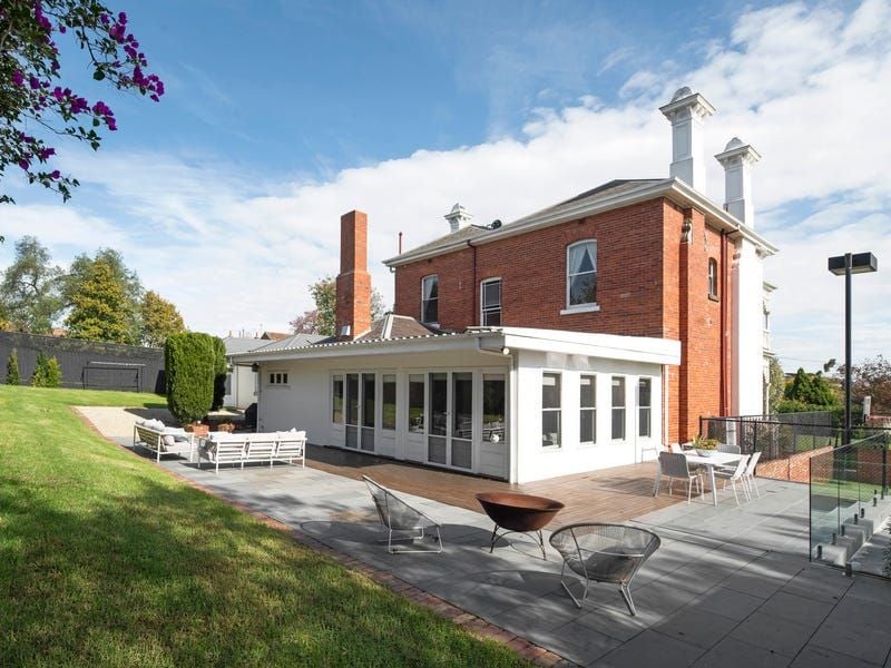 Magnificent views from the city across to the Macedon Ranges are a striking feature of the upstairs domain that offers five sizable bedrooms and an elegant modern bathroom with a clawfoot bath. Additionally, there is a subfloor space for wine cellaring, three-door garage with lounge/studio, bedroom and bathroom (ideal for extended family or au pair) as well as a large solar-heated in-ground pool and N/S floodlit Mod-Grass tennis court.