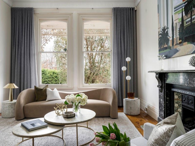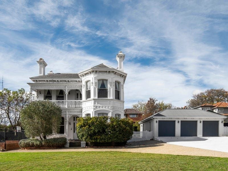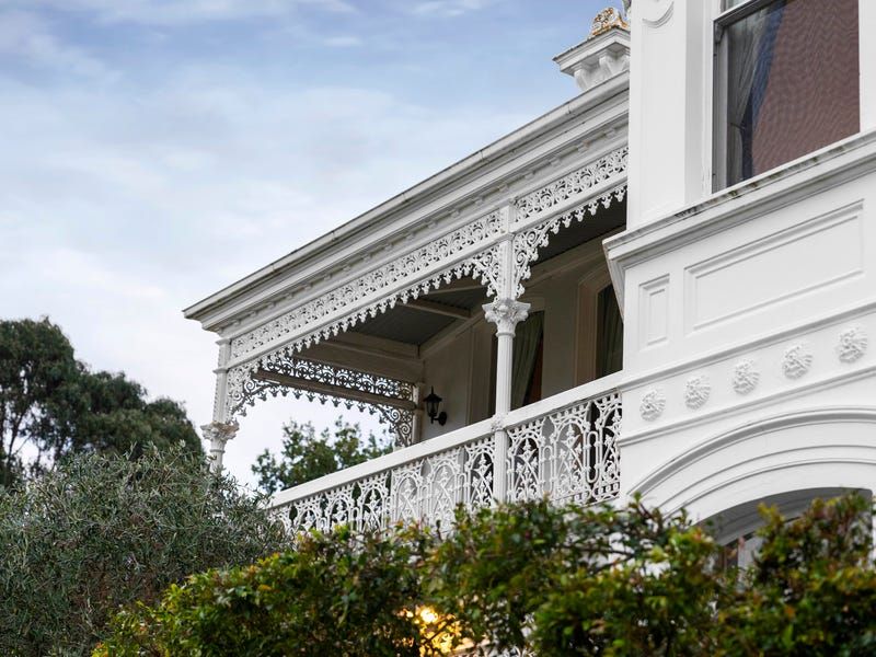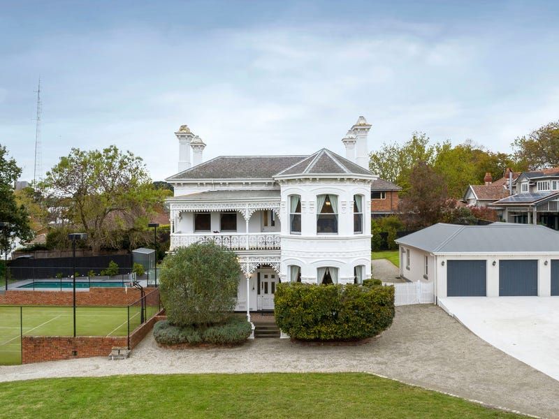 Rising on a ridge to command spectacular uninterrupted views directly over Surrey Gardens to the city skyline, 'Kirkland' is a landmark Italianate mansion built in 1886 that imperiously stands on a 3092 sq. metre allotment (approx.) amidst expansive garden grounds including tennis court and swimming pool. Widely regarded as 'the white house on the hill', this stately residence of nine principal rooms presents a remarkably rare family opening in a prestigious Surrey Hills position.