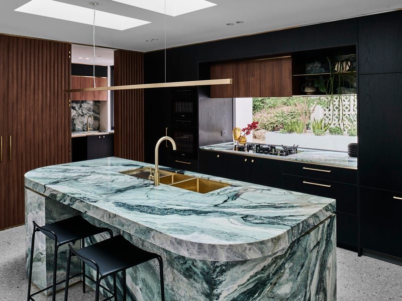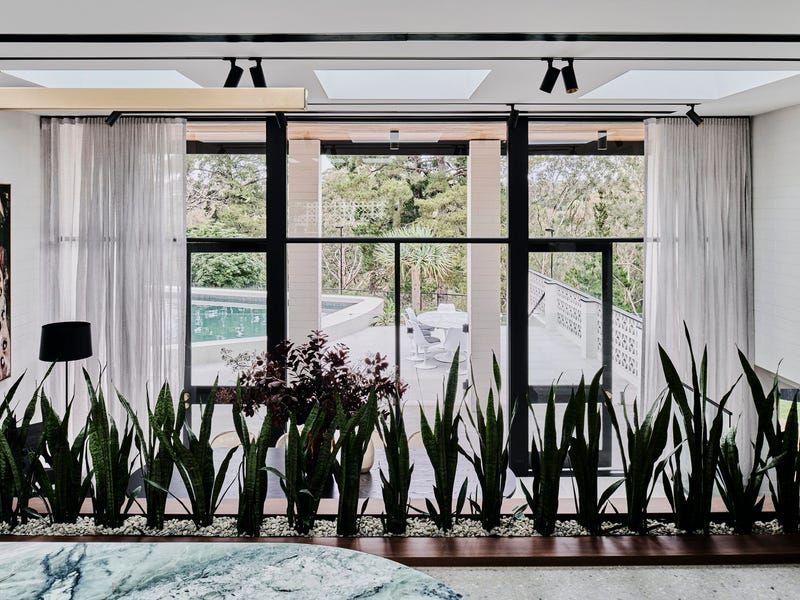 Framed by a distinctive architect-designed footprint, every conceivable element with no expense spared has been carefully curated to create an all-new, state-of-the-art aesthetic throughout a functional and flexible interior brimming with high-end flair. Introduced by undulating lawns, Palm Springs desert-inspired garden oases and handcrafted stonework walls, the allure of nature is reflected inside by full-height glazing, terrazzo floor tiles, blackbutt ceilings, brushed brass accents and solid Calacatta marble.
