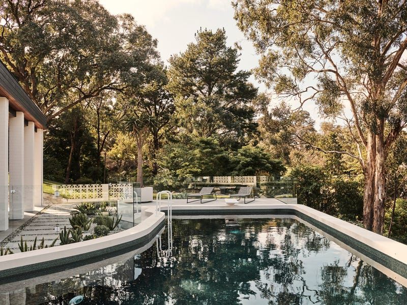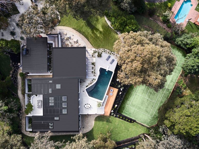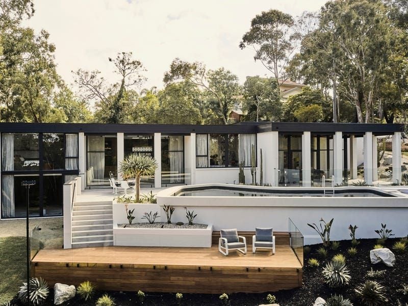 Time stands still amidst the tranquil bushland surroundings and vast landscaped grounds of this breathtaking split-level residence where the sheer magnitude of a luxurious transformation is a triumph of contemporary design. Original 1970s architecture in the Mid Century Modern style has sympathetically and meticulously evolved into an expansive family sanctuary with a swimming pool and tennis court on a massive 4083 sq. metre allotment (approx.) at the head of a cul-de-sac.