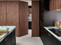 Towering windows to a 3.6 metre ceiling bring the outside into a spacious family living room that splits to a versatile separate Gallery/Sitting room before a magnificent new Calacatta verde marble kitchen boasting Miele Ovens and fully integrated European stainless-steel appliances. A secret door conceals a spacious and versatile Walk in Pantry/Laundry. Fluted timber panels extend to a brilliant bar with dual Vintec wine coolers serving a glamorous dining room with a fabulous fitted Terrazzo bench including a leather cushioned seat and an alpaca velvet back rest.