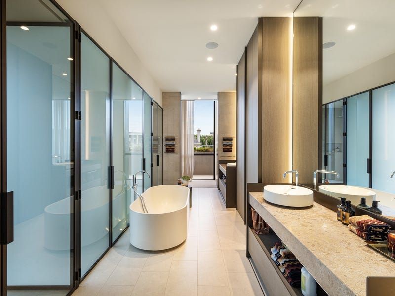 Arriving home into your private garage, and upon entering your own personal lift, you will be greeted to marmorino polished plaster, oak flooring and three metre high ceilings. Multiple large formal and casual living and dining zones including open fire places and gourmet kitchen with butler's pantry.