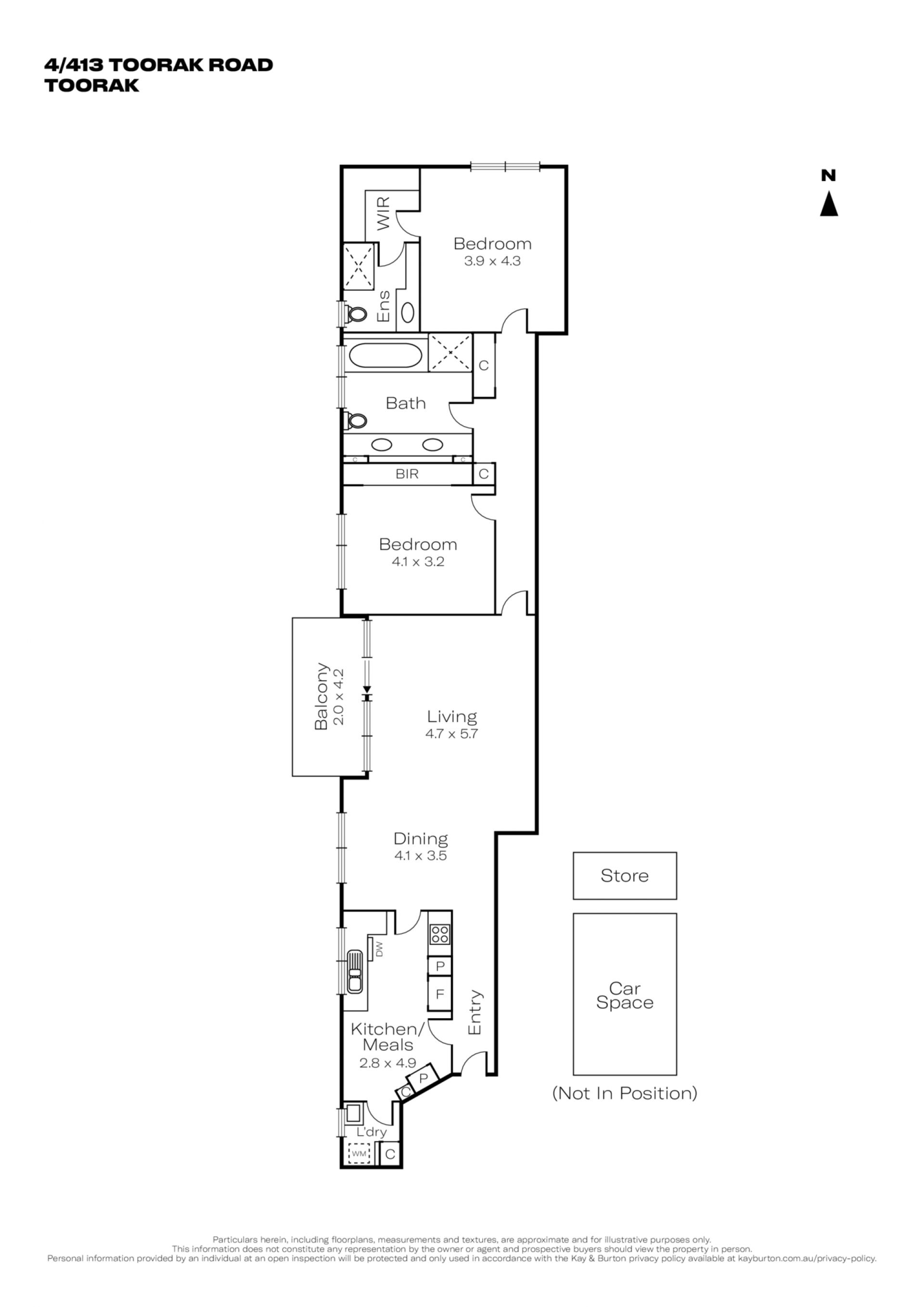 A large light-filled living and dining area flows onto a sunny, spacious balcony—perfect for alfresco dining and relaxed entertaining. The well-appointed kitchen with meals area integrates seamlessly into the living space and adjoins a separate laundry.