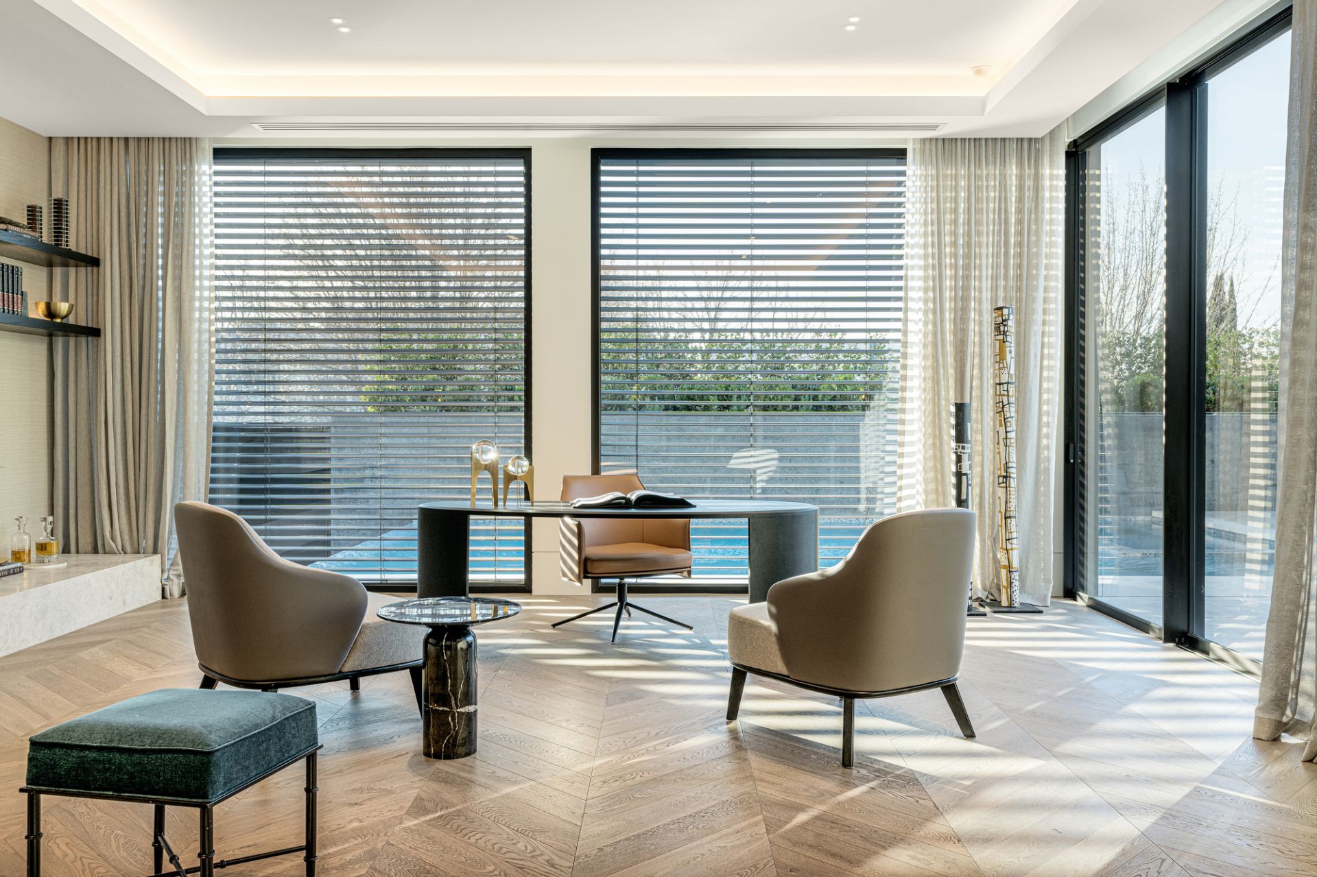 On the first floor, the palatial master suite steals the show with its dressing room and spectacular ensuite with freestanding bath and walk-in shower. Four further spacious bedrooms all benefit from marble ensuites, plush carpet and robes.