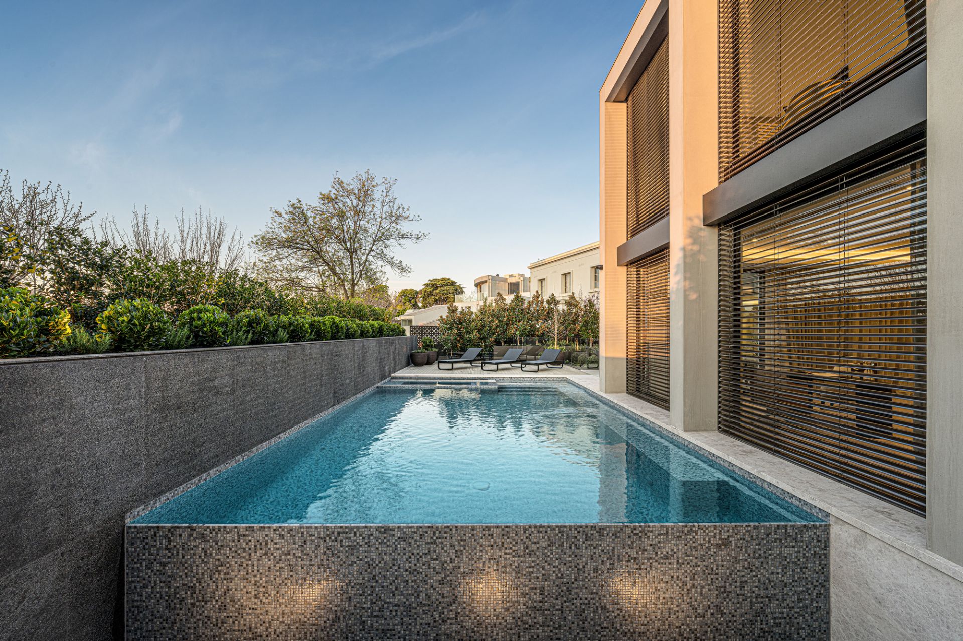 Floor-to-ceiling doors open up to the infinity pool, spa and private courtyard which provides a tranquil space to entertain on warmer evenings. An alfresco area with Italian Artusi grill seamlessly integrates indoor and outdoor living.