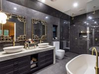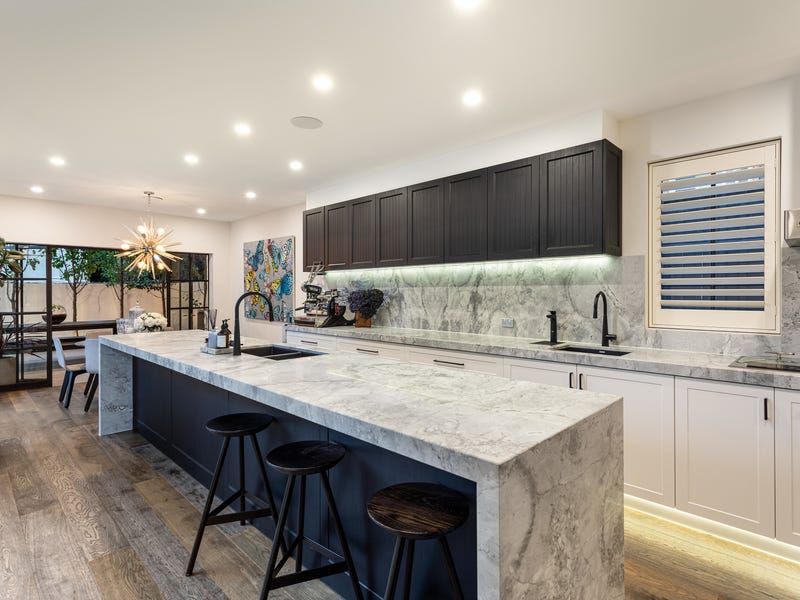 Grand scale dimensions are matched by a striking palette of dark and light tones, underscored by high- end finishes of European oak timber floors, with stone and marble in the kitchen and bathrooms and lavish fittings and fixtures.