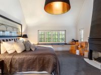 The breathtaking formal living and dining room with a stone finished fireplace and cosy window seat is ideal for large scale entertaining. Metal framed doors provide an easy transition to the deck and bluestone paved entertainment area overlooking the sparkling heated swimming pool.