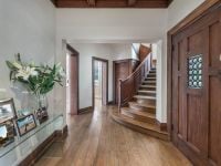 beautifully proportioned interiors feature timber and stone finishes, magnificent fireplaces, oak floorboards and a stately staircase. Large windows allow light to flood inside and provide views over the garden and pool.