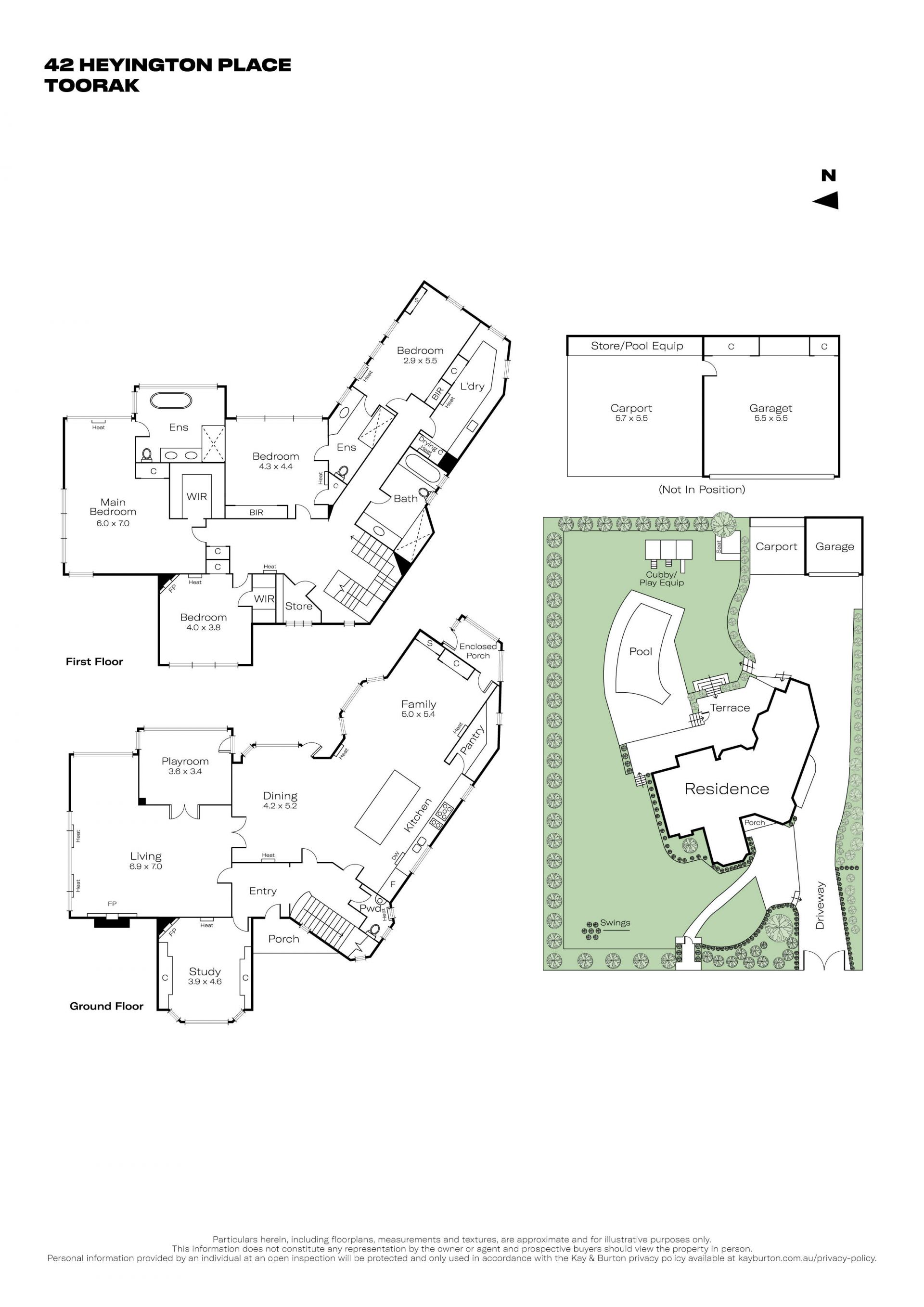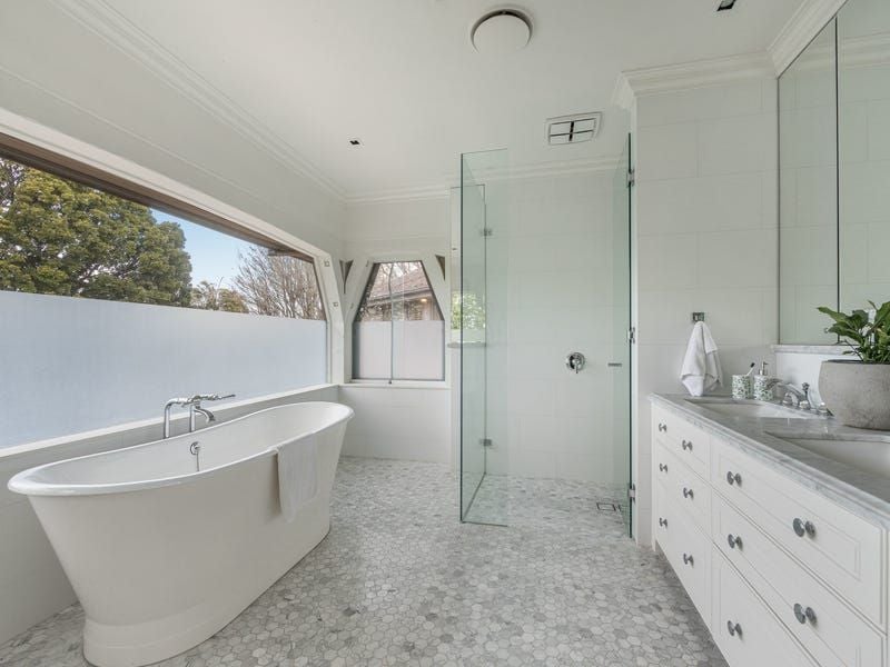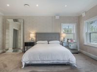 Upstairs the opulent main bedroom with treed outlooks, has a private sitting area, walk-in wardrobe and sublime mosaic and marble ensuite with free standing bath and separate shower. Three additional robed bedrooms share a two-way bathroom and a similarly well-appointed central bathroom.